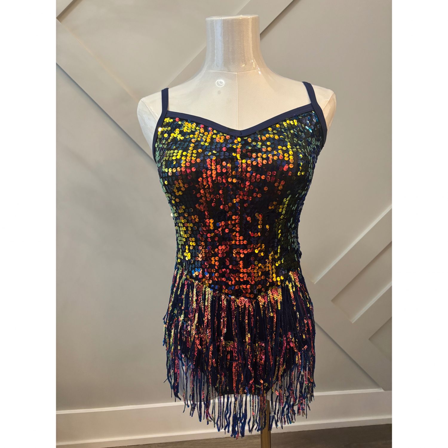 Packed with sparkle and full of razzle-dazzle, this costume lights up the stage! The shimmering fringe adds fabulous movement, making every step captivating. A true showstopper that's sure to turn heads both on and off the stage