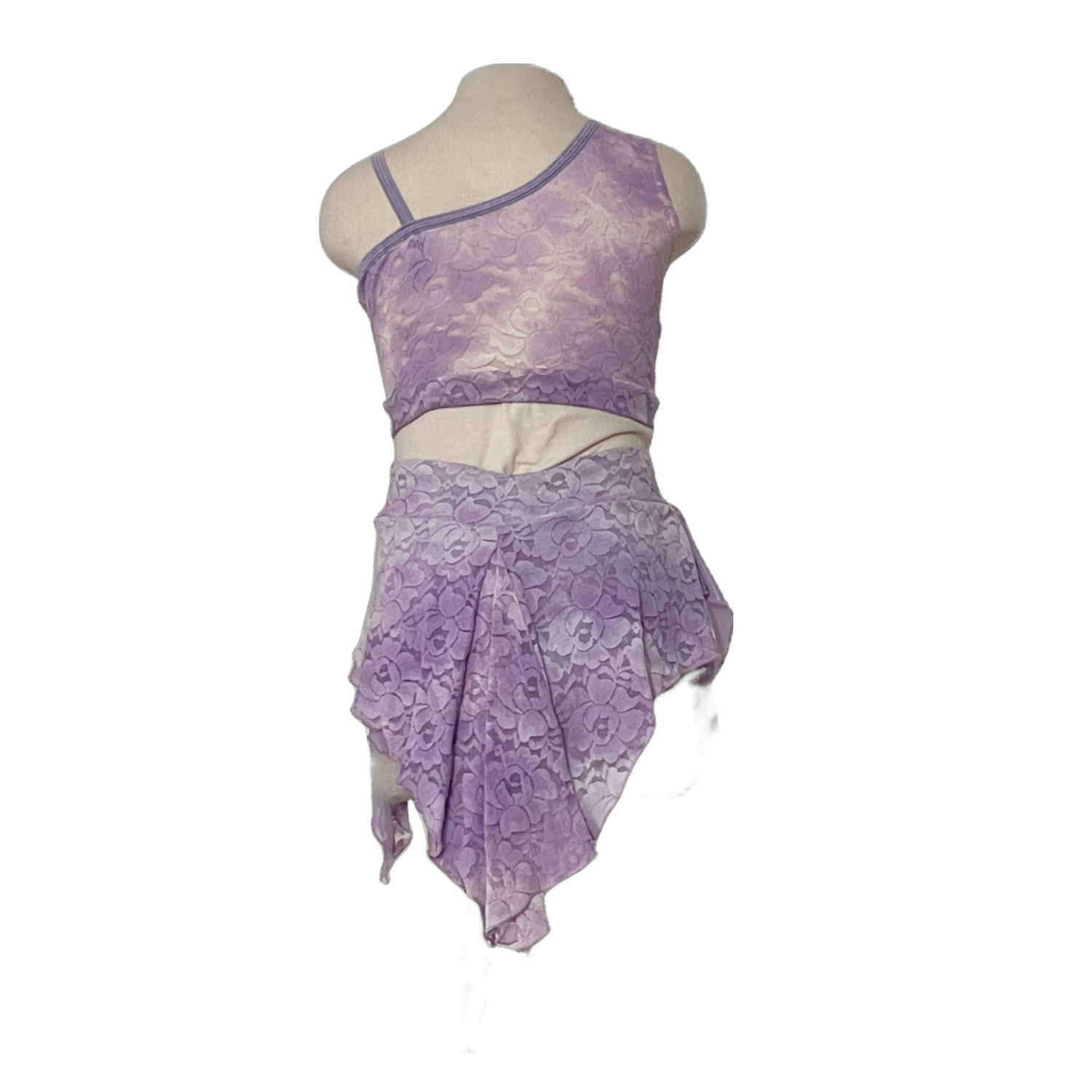 Full lined lace top designed over one shoulder hand pained