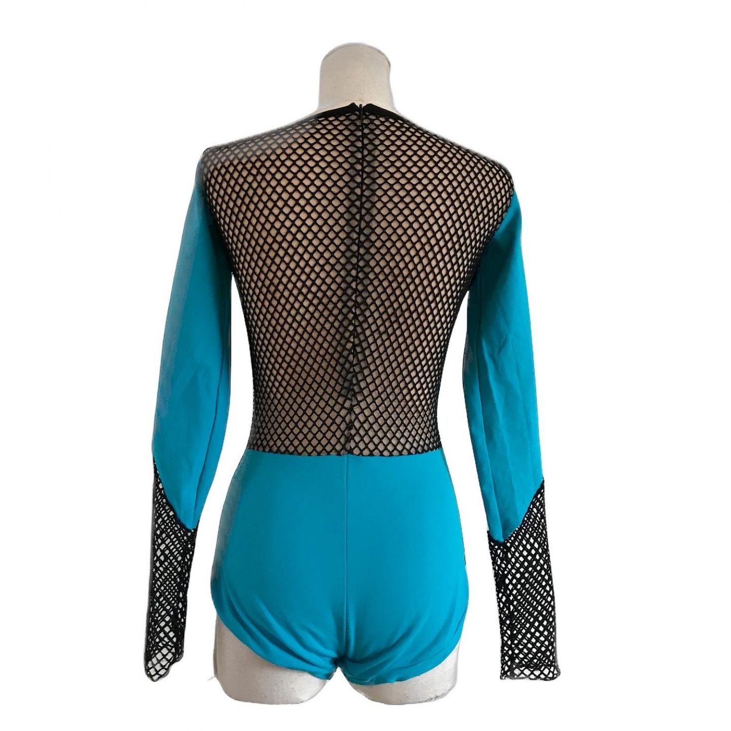Full lined bodysuit, long sleeves, with a black thick mesh