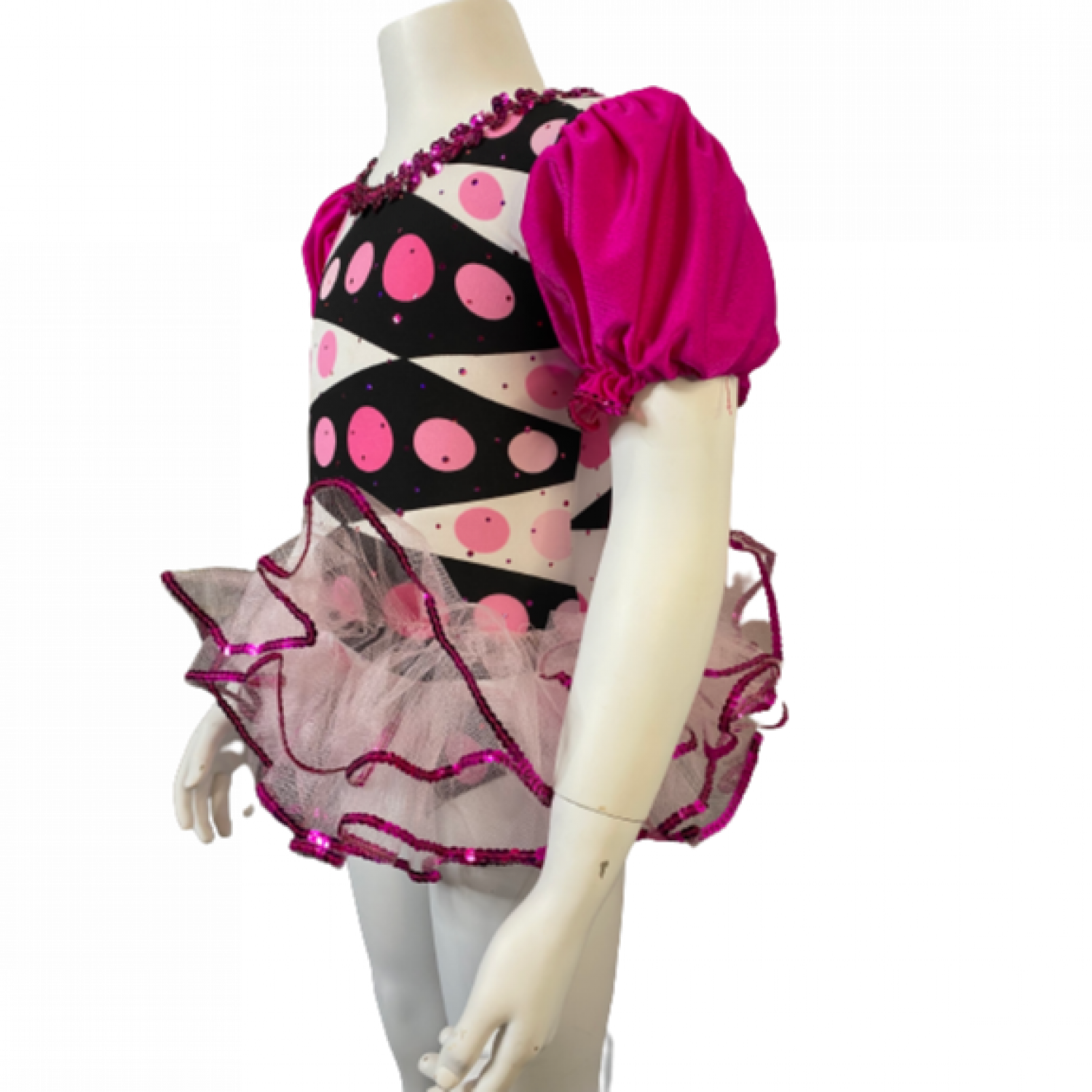 White/Pink Polkadot Bodysuit & Tutu with Pink Sequin Detailing