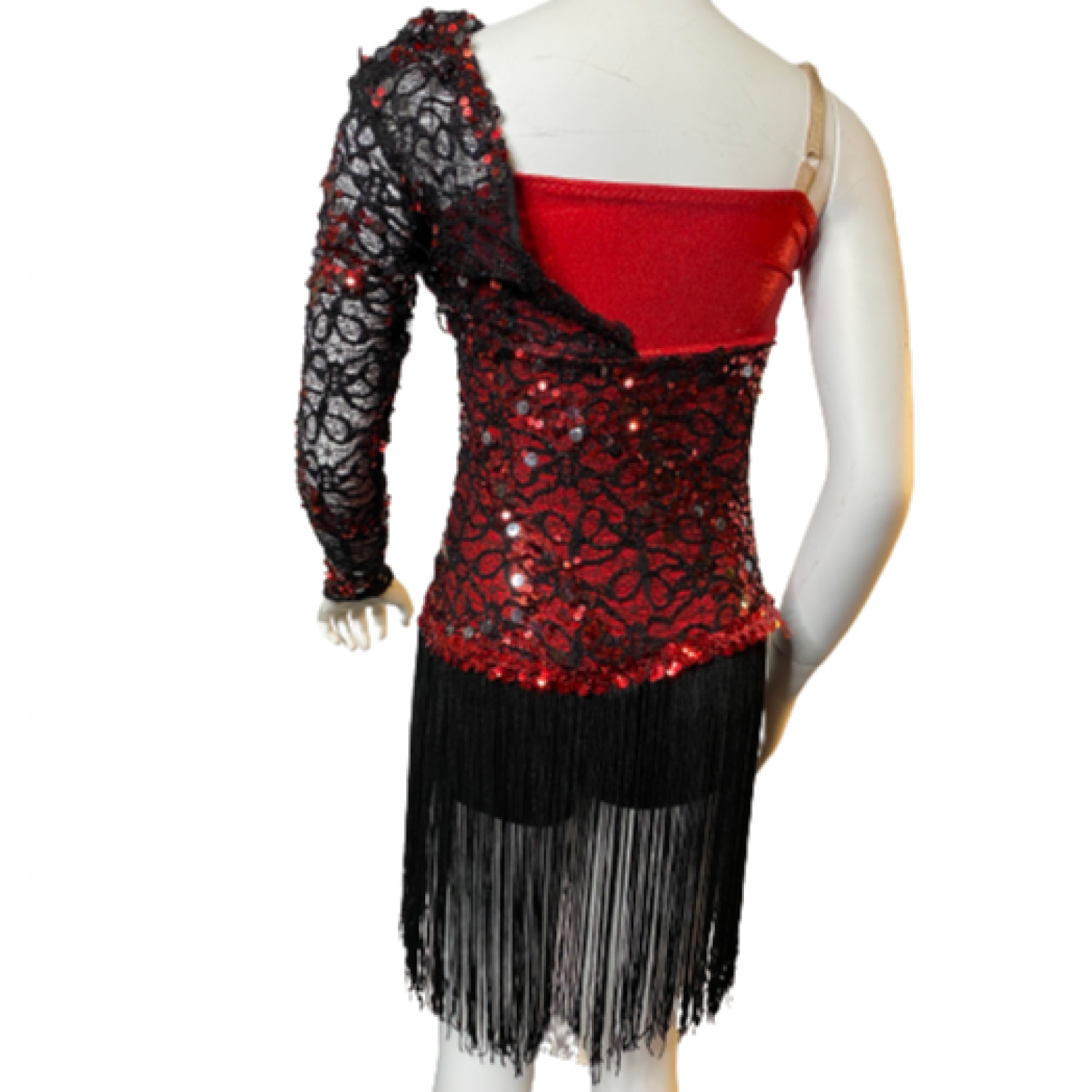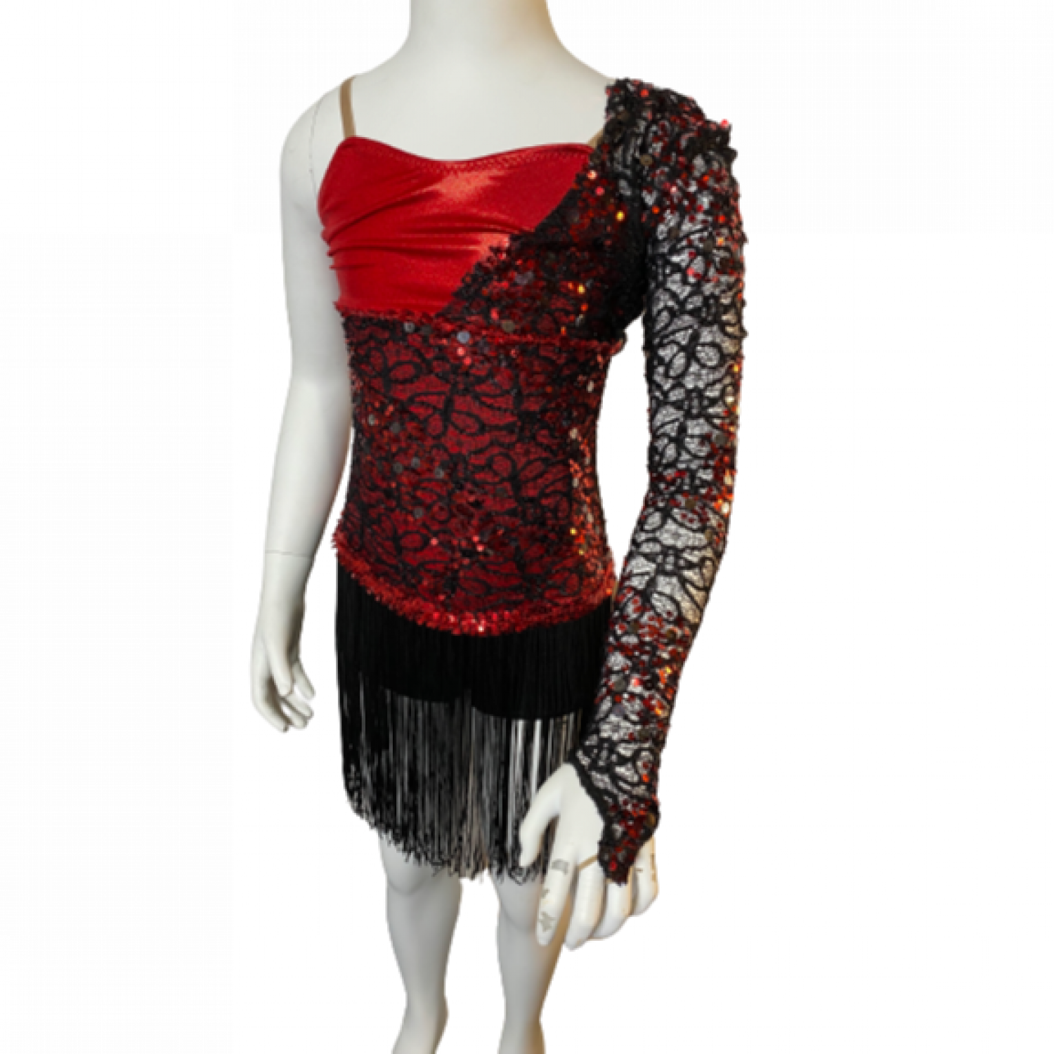 Red & Black Bodysuit with Shorts, with Lace Sleeve