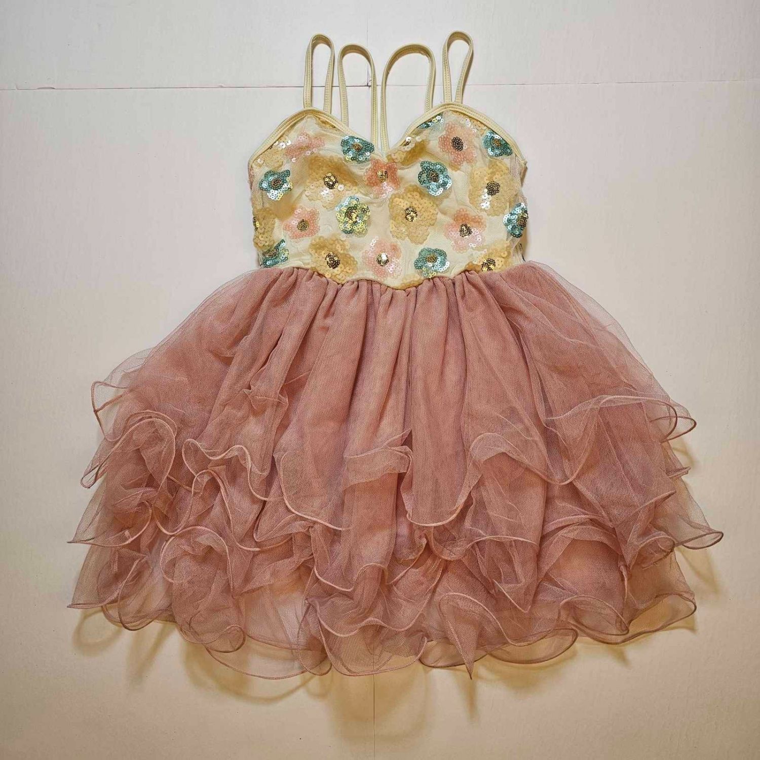 I enjoy Being a Girl - Weissman pink layered tulle skirt sequined leotard musical theatre dance costume in size LC - Child Large. Can be used for tap, jazz or ballet.