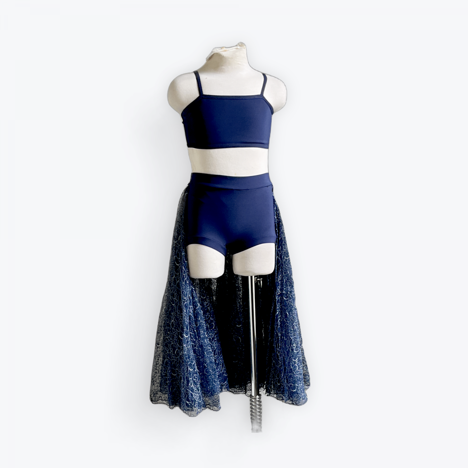High waisted booty shorts with attached lace skirt