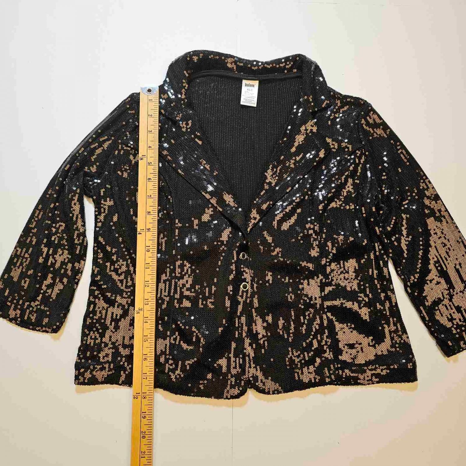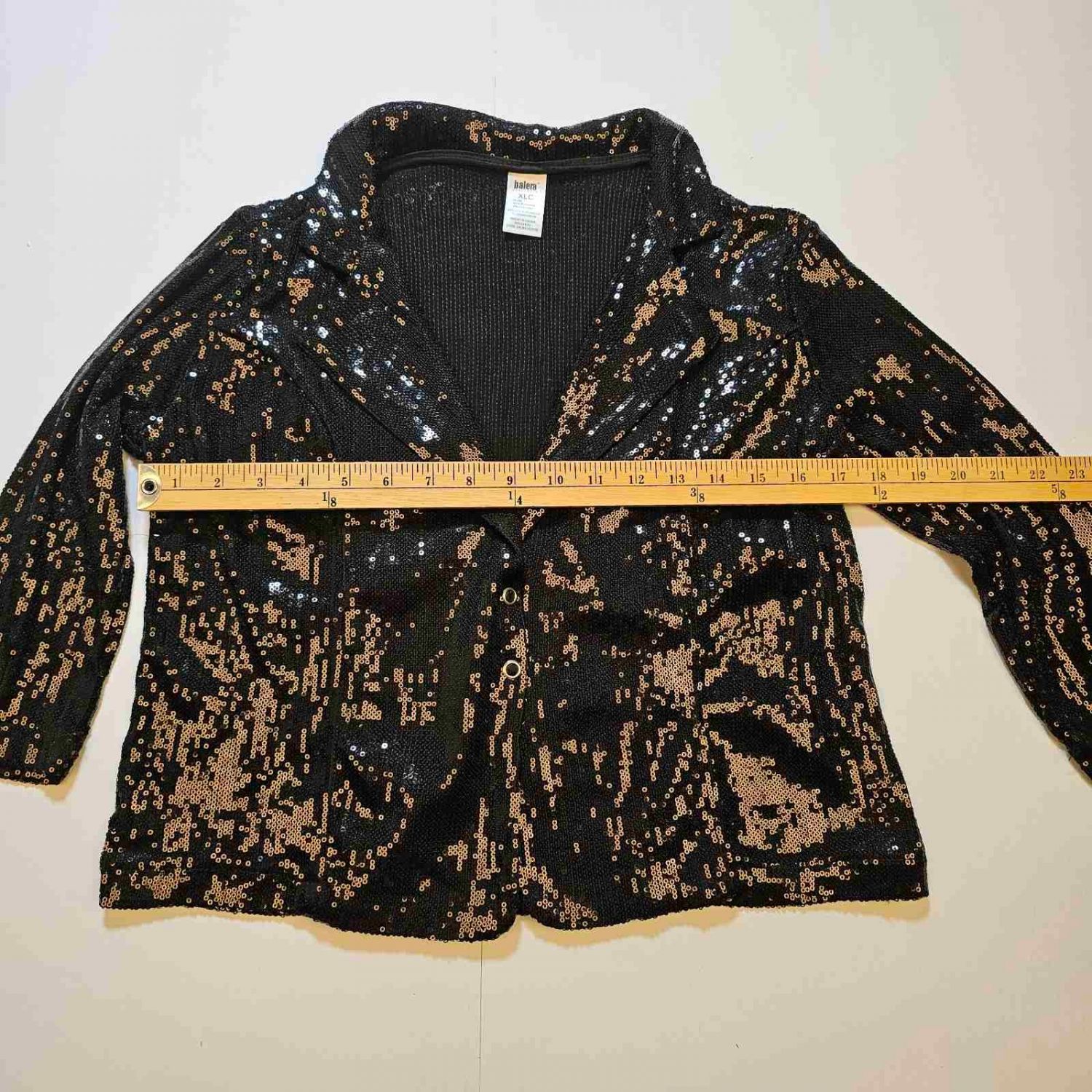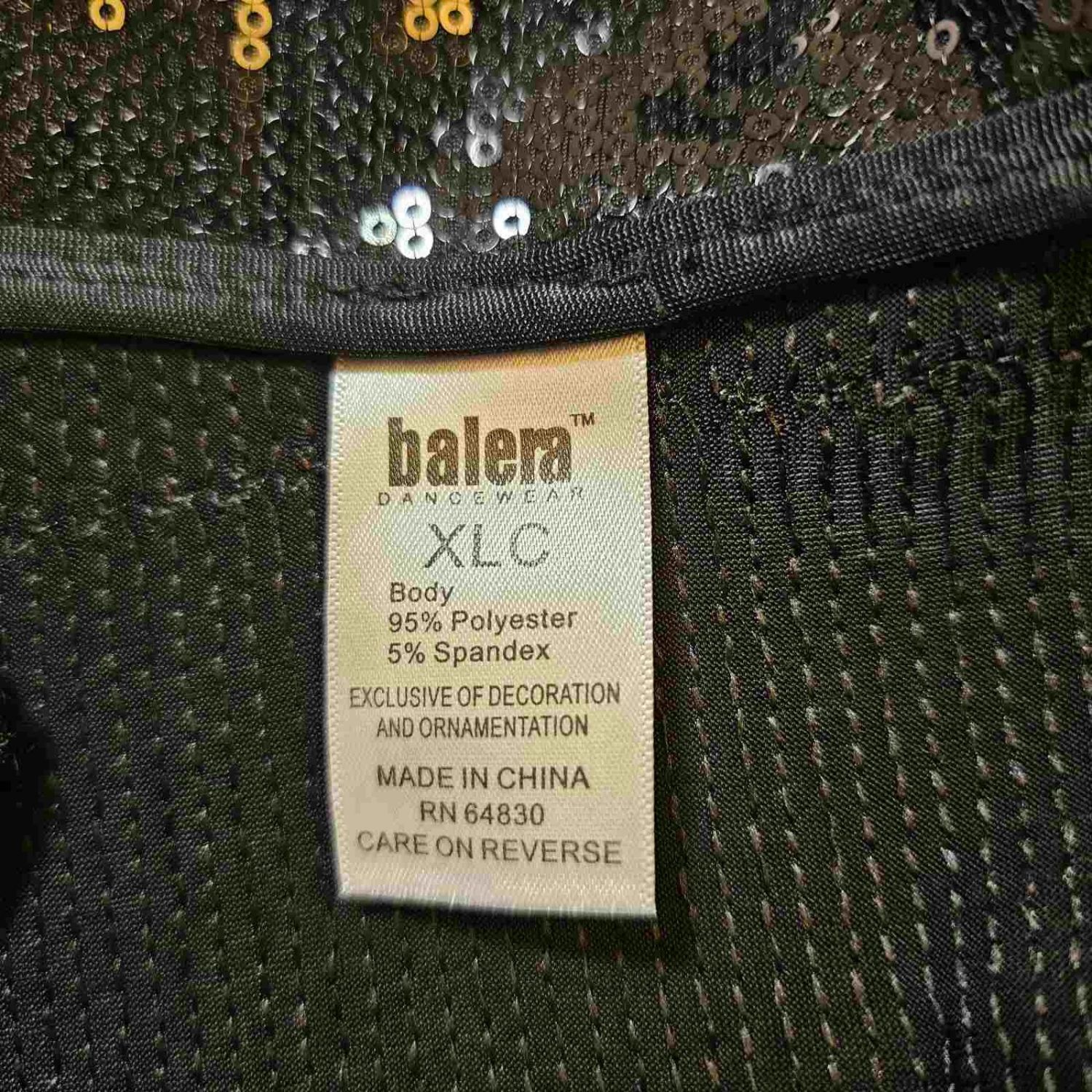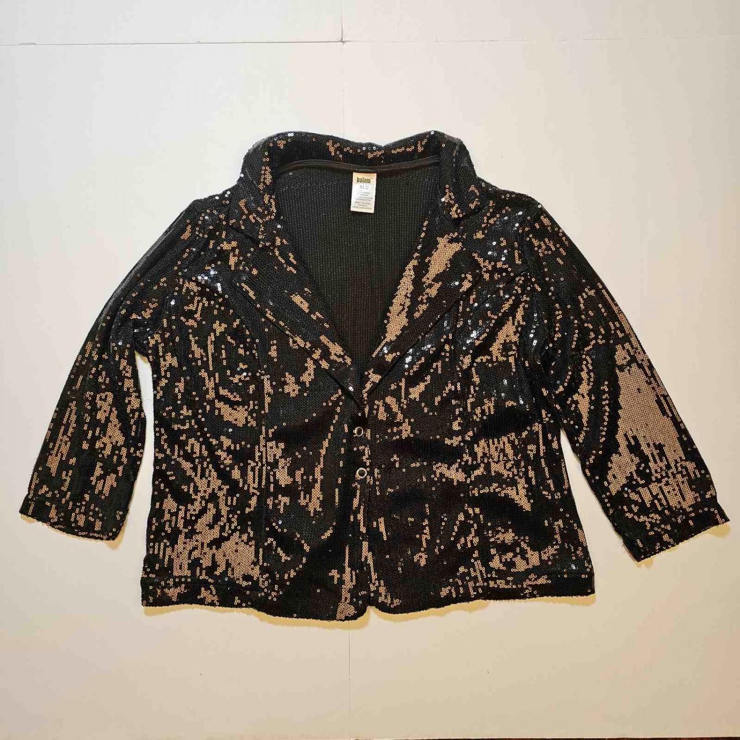 Balera black sequined 3-quarter sleeve blazer jacket tap dance costume in size XLC - Child Extra Large.