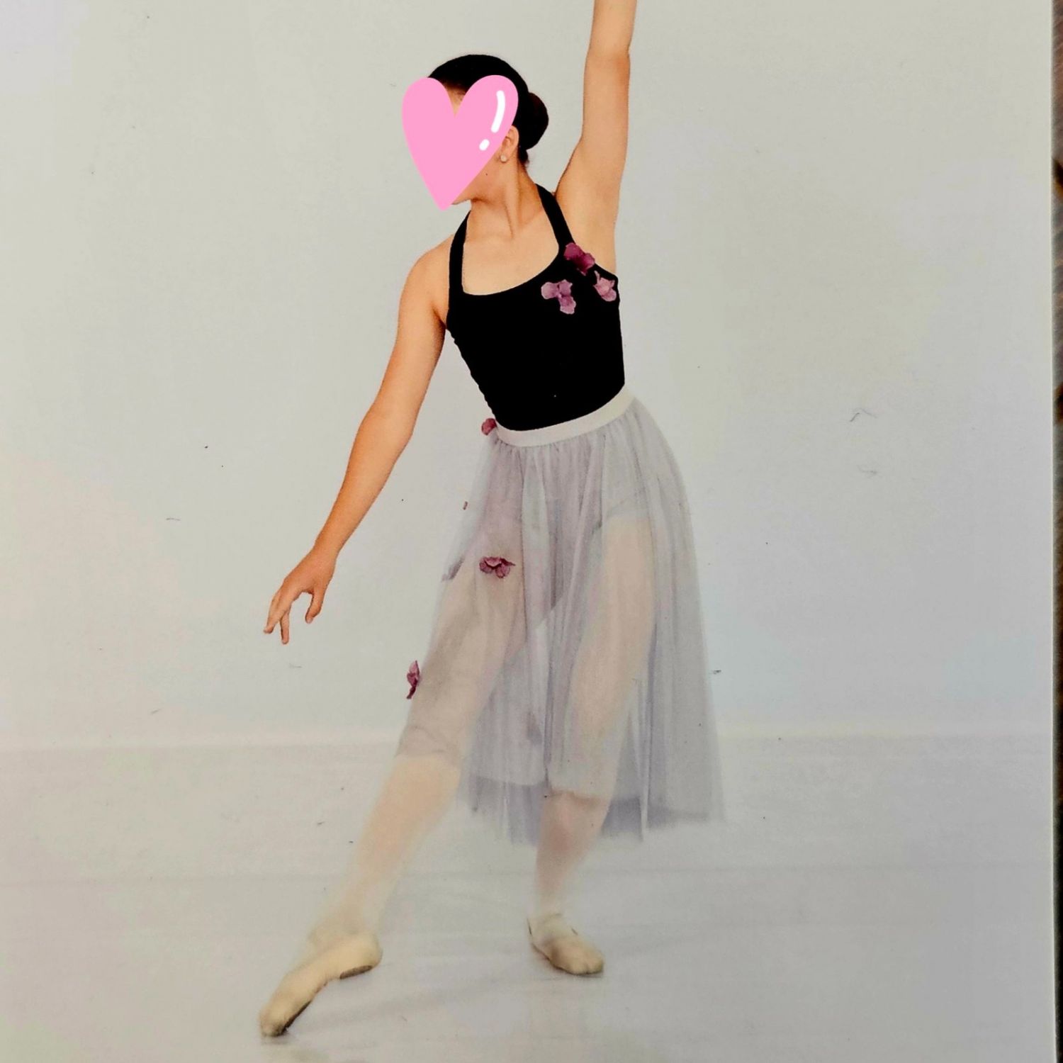 Balera grey high-low tulle skirt SA + black bodysuit dance costume size MA. Both pieces can also be used separately or as a set.
