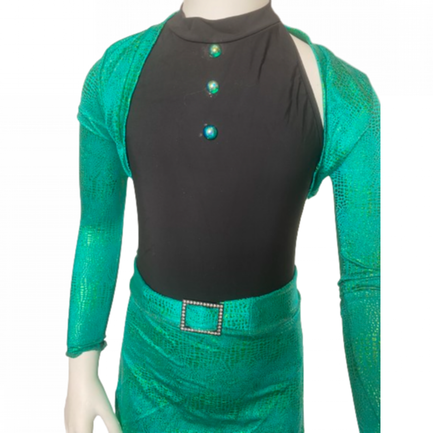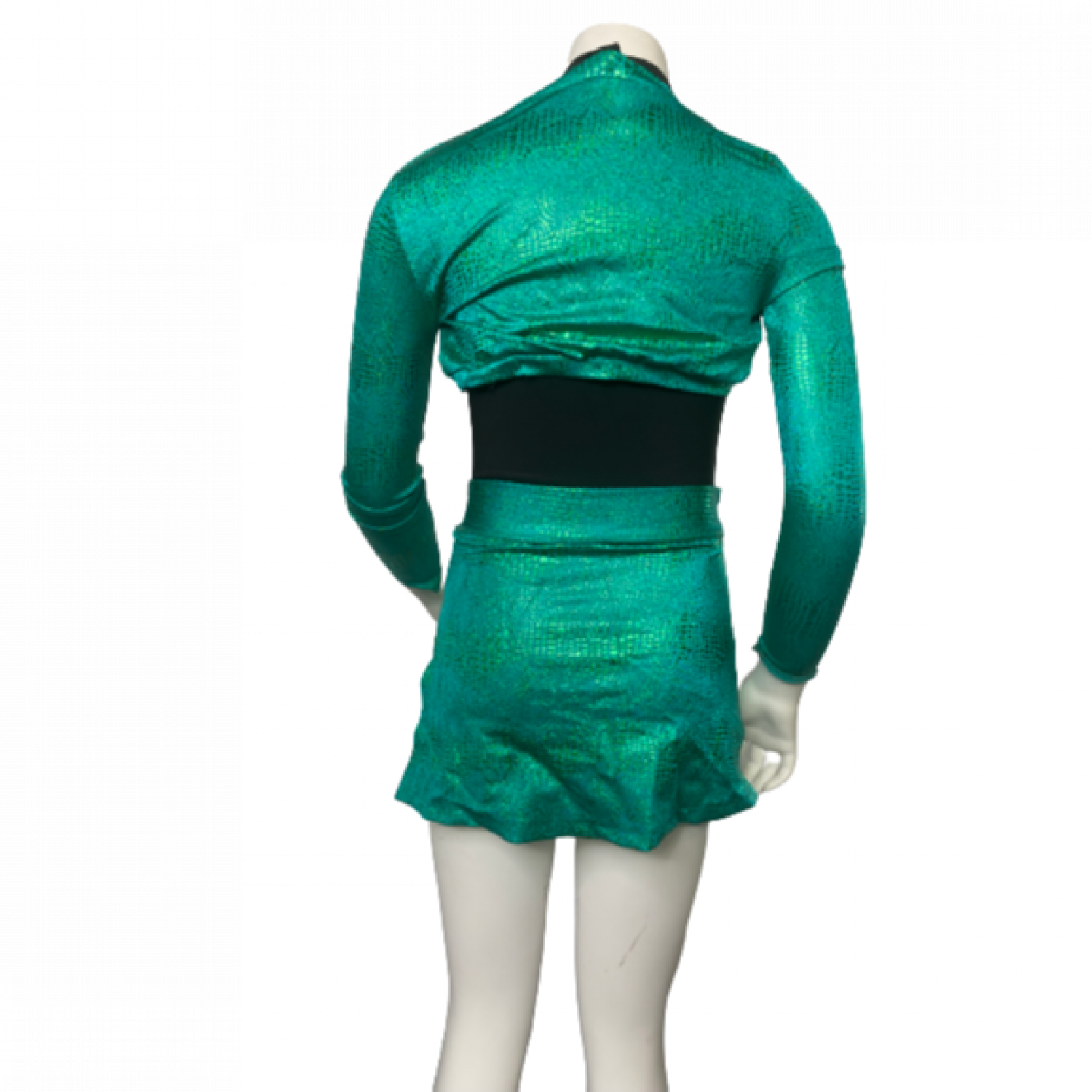 Green Crocodile Pattern Shawl and Skirt with Belt
