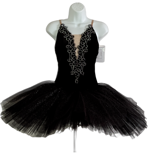 Elevate your ballet performance with this stunning used custom ballet tutu featuring crystal embellished front.