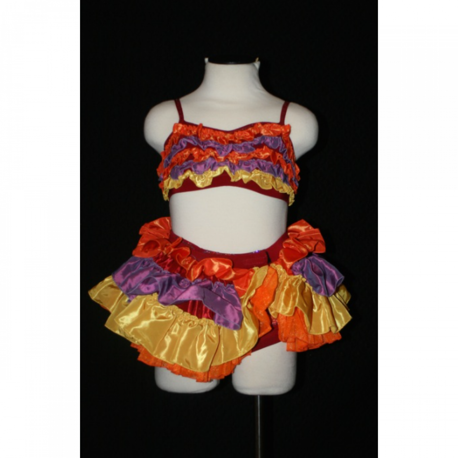 Skirt is velcro, 3 layered ruffles.