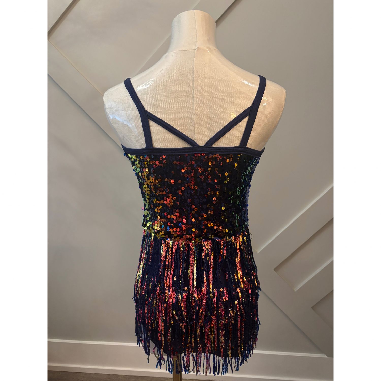 Packed with sparkle and full of razzle-dazzle, this costume lights up the stage! The shimmering fringe adds fabulous movement, making every step captivating. A true showstopper that's sure to turn heads both on and off the stage