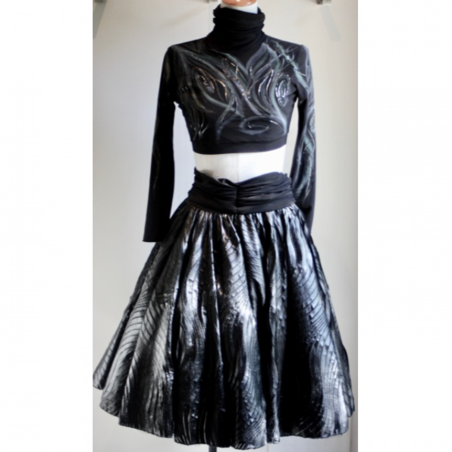 Skirt black pleather with tulle lining and built in booty shorts