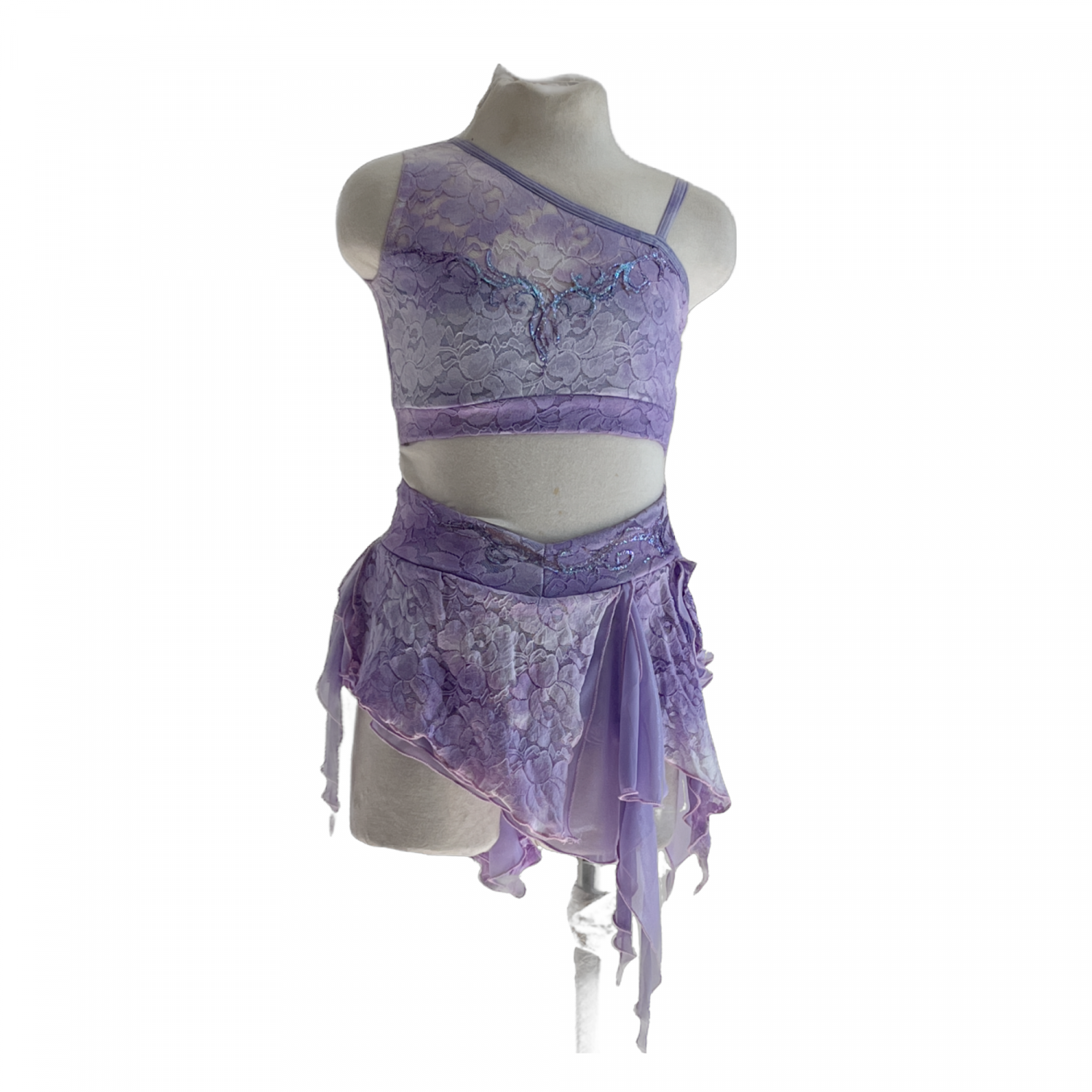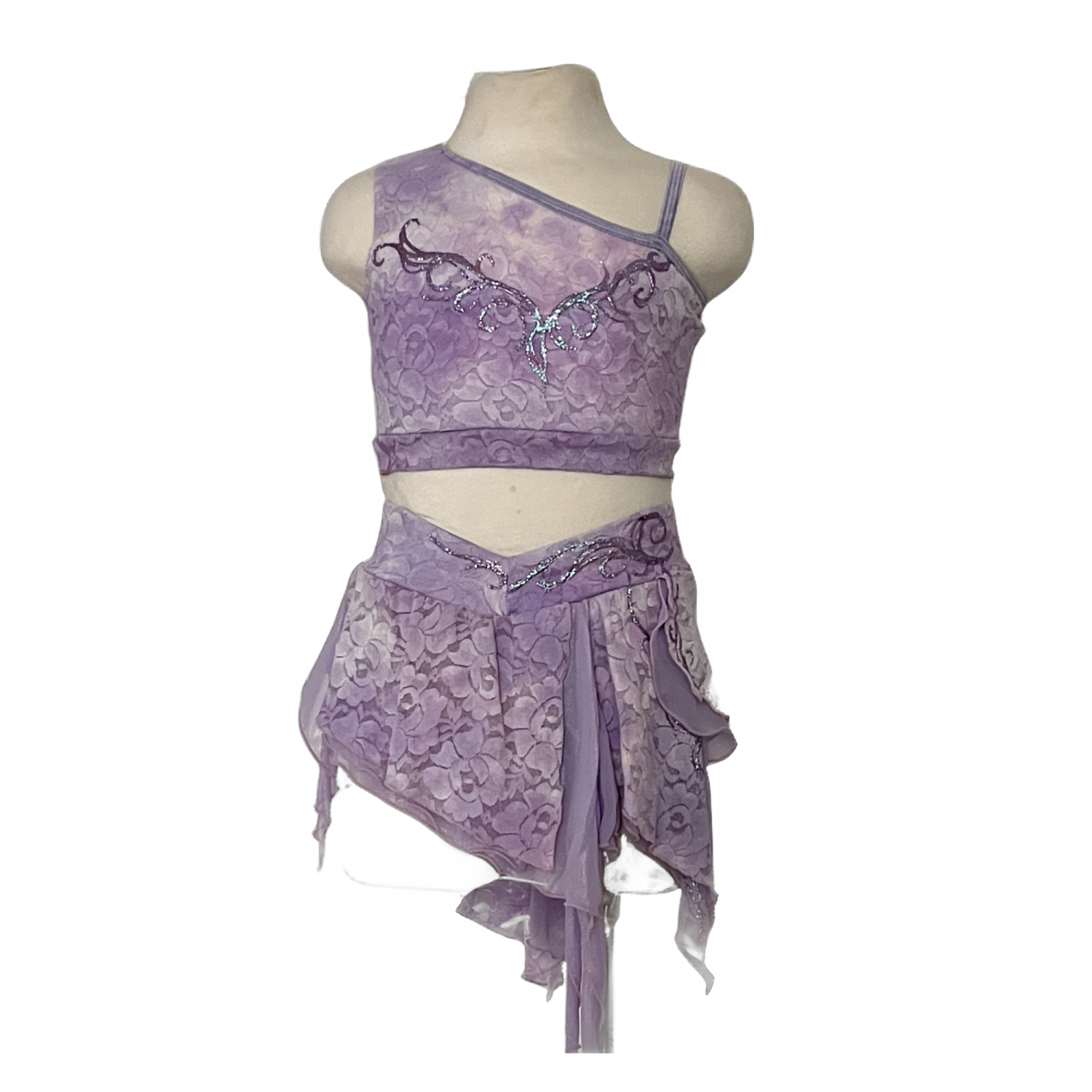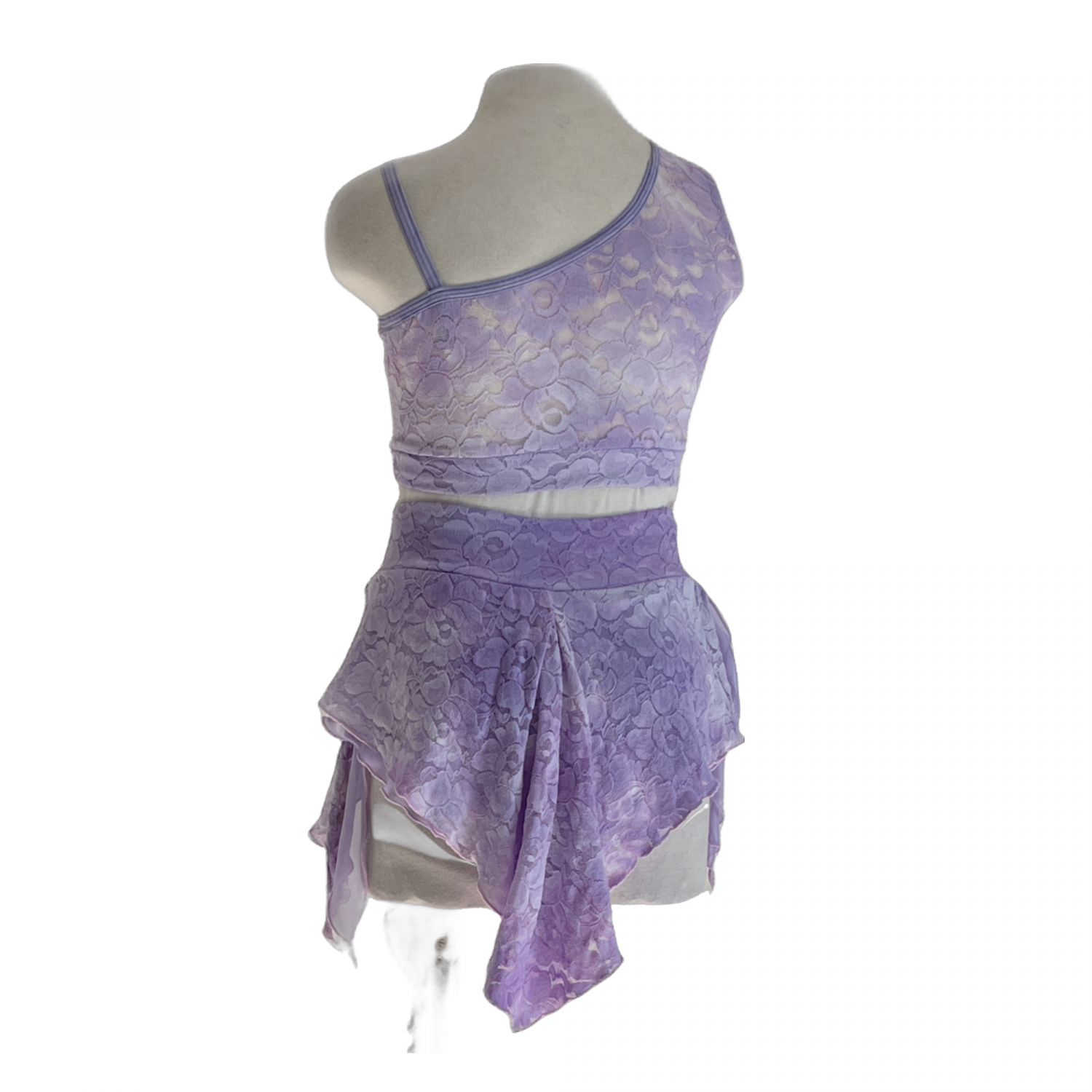 Full lined lace top designed over one shoulder hand pained