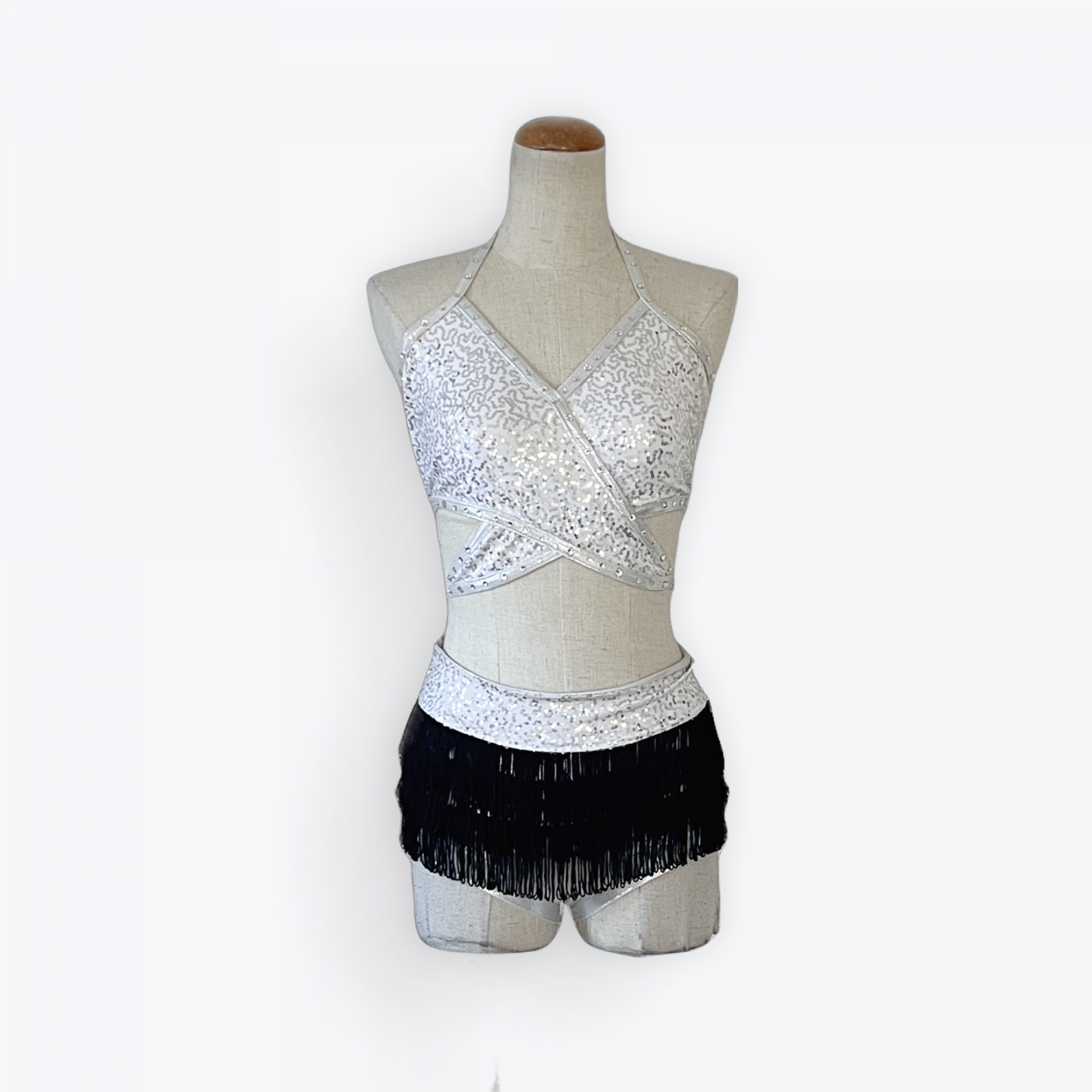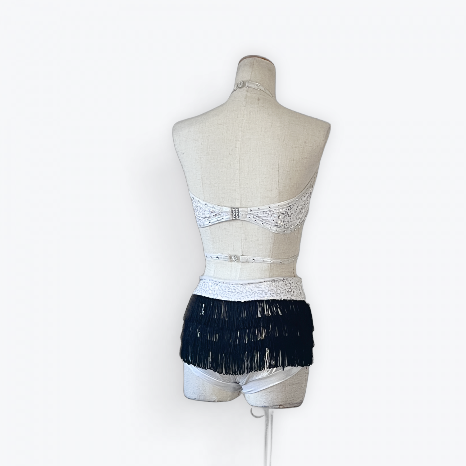 Bottom is booty shorts with fringe