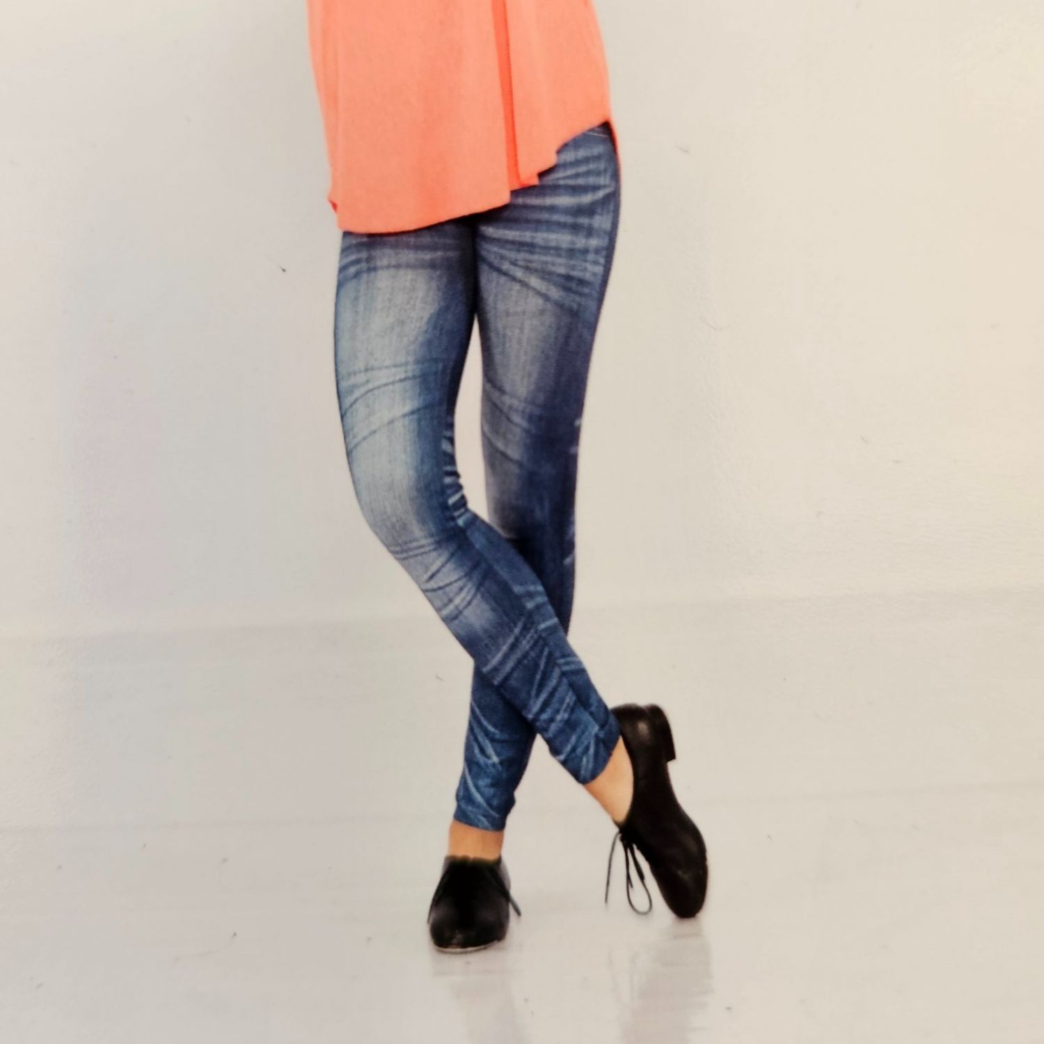 Jean print blue tights for tap dance costume in size M/L - Adult Medium/Large. Can be paired with any top for tap or Hip-Hop routine.
