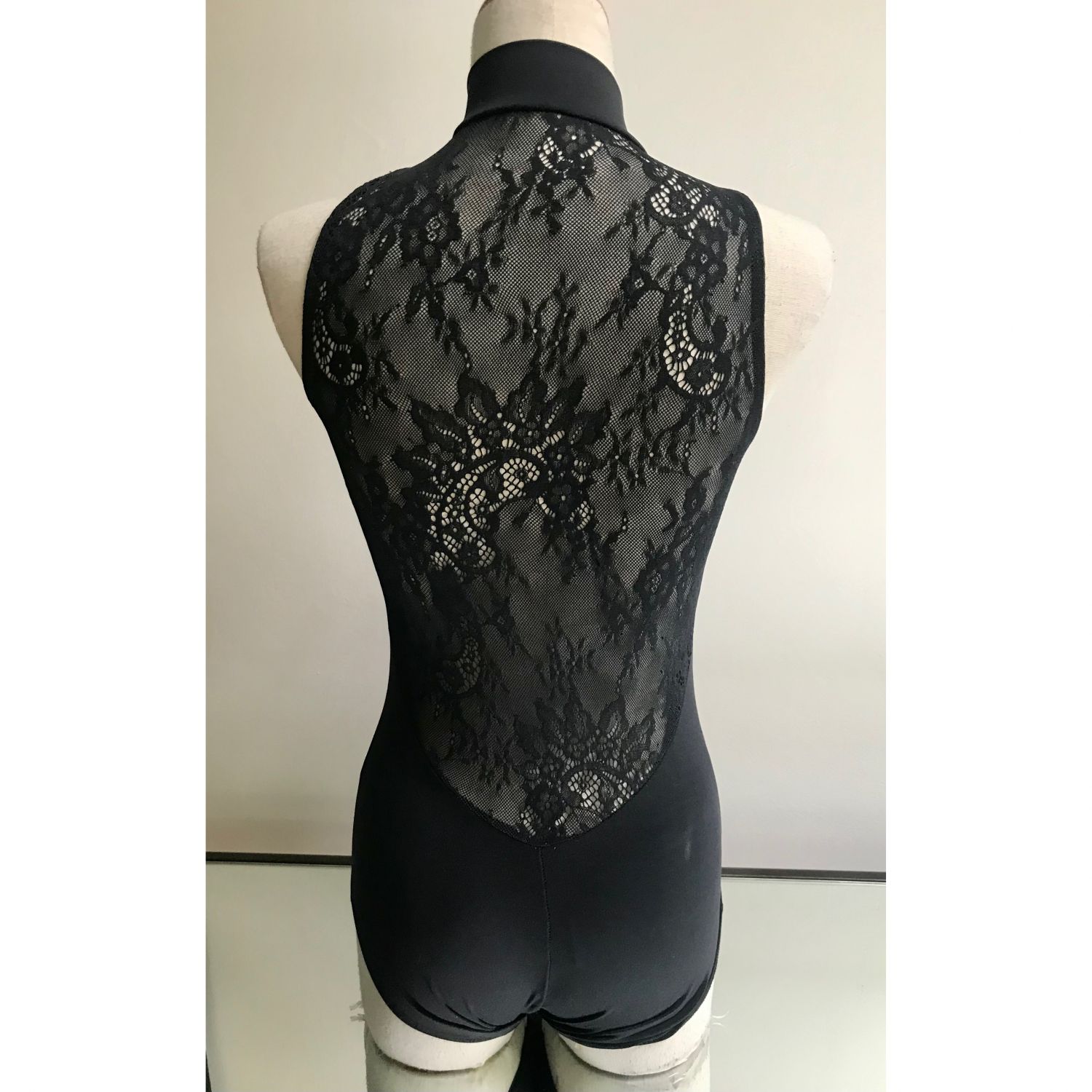 Gorgeous zipper front leotard with lace back. Buttery soft fabric with a high collar and beautiful back. One of their best sellers