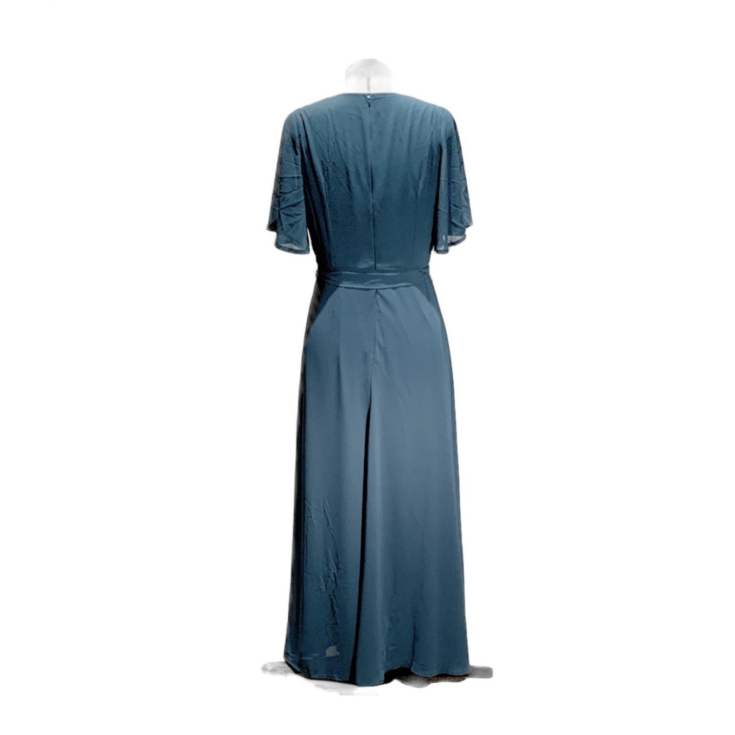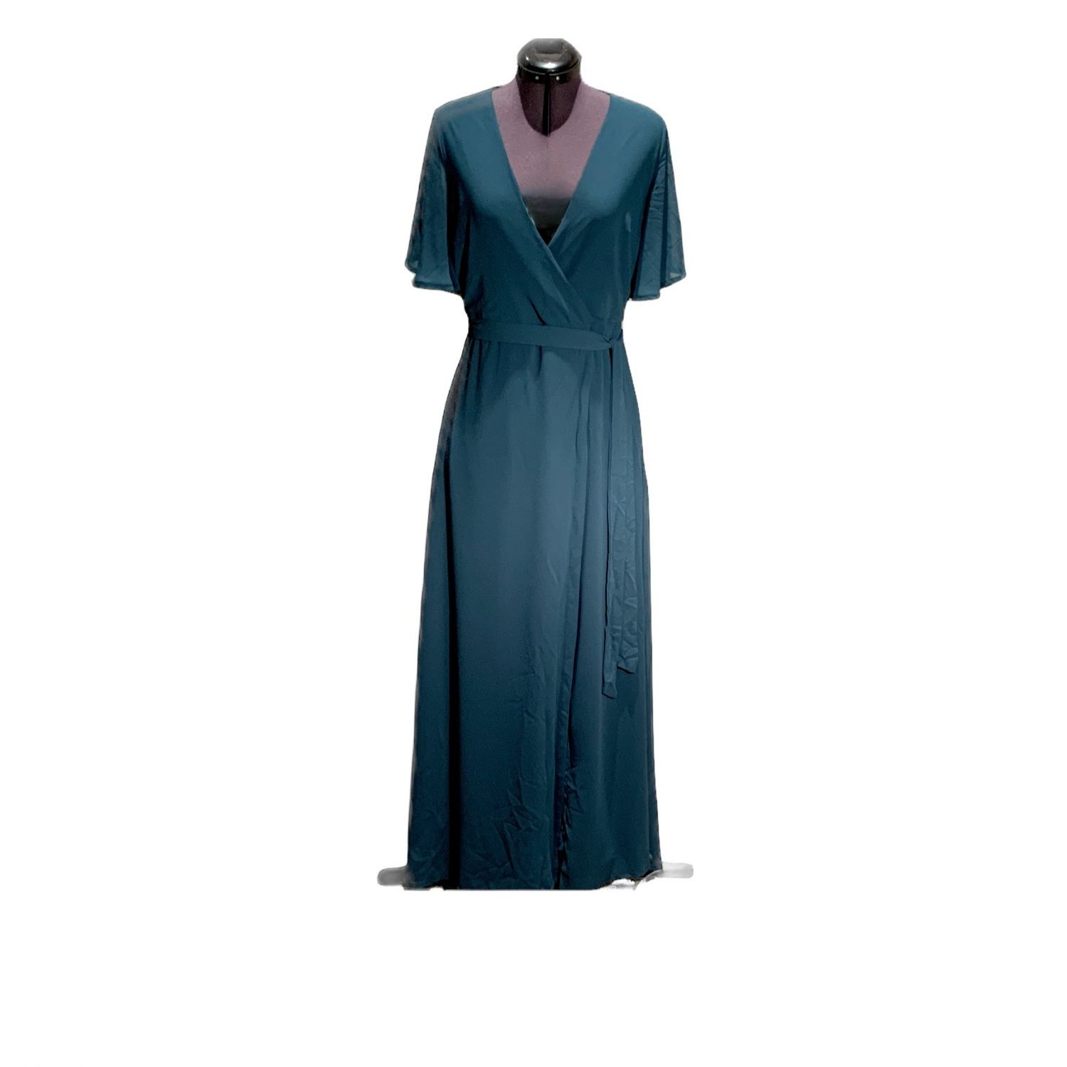 Long Dark Adult M dark green dress.  Short sleeves, V neck and mesh overlay.