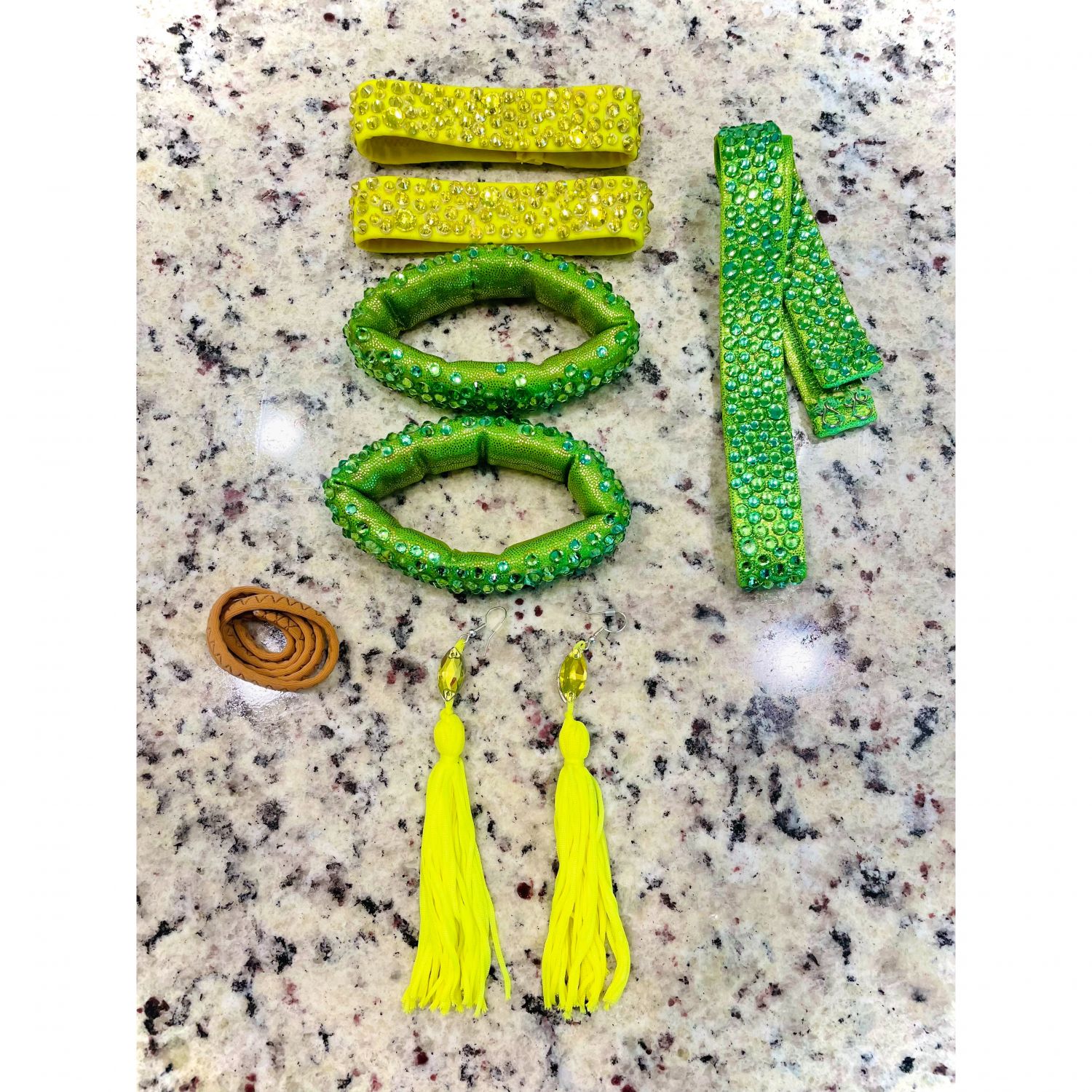 I held off on selling this dress for as long as possible because I LOVE IT!!! It was custom-made by Magma, and I wore it for 1 competition. It seriously POPS on the dance floor! It comes with all the accessories you see in Pic #4 (earrings, 4 bracelets, belt, and extra strap). It was professionally cleaned by Magma and shipped back to me in the plastic wrap you see in Pic #3. It is basically, BRAND NEW, and I have not opened it. I'll let you do that! ;) I am 162.5cm without heels (5'4"). Free shipping if you are in the USA!