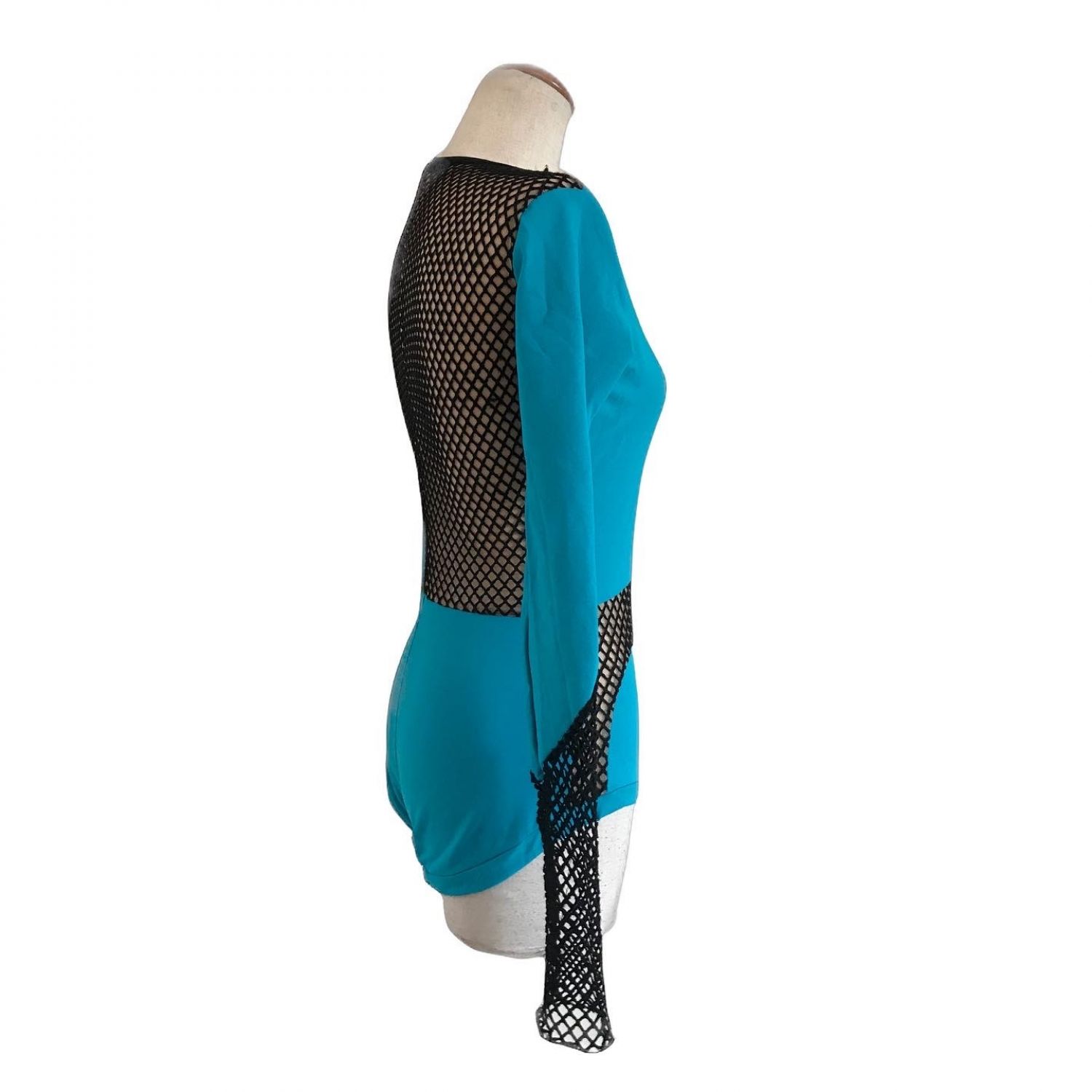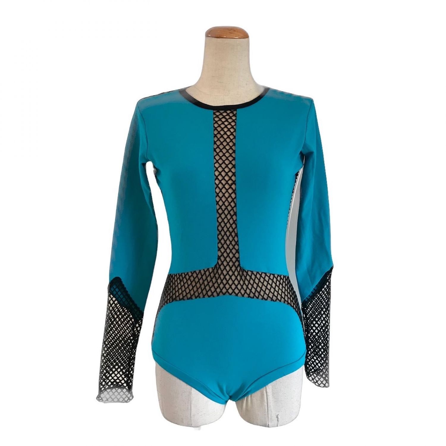 Full lined bodysuit, long sleeves, with a black thick mesh