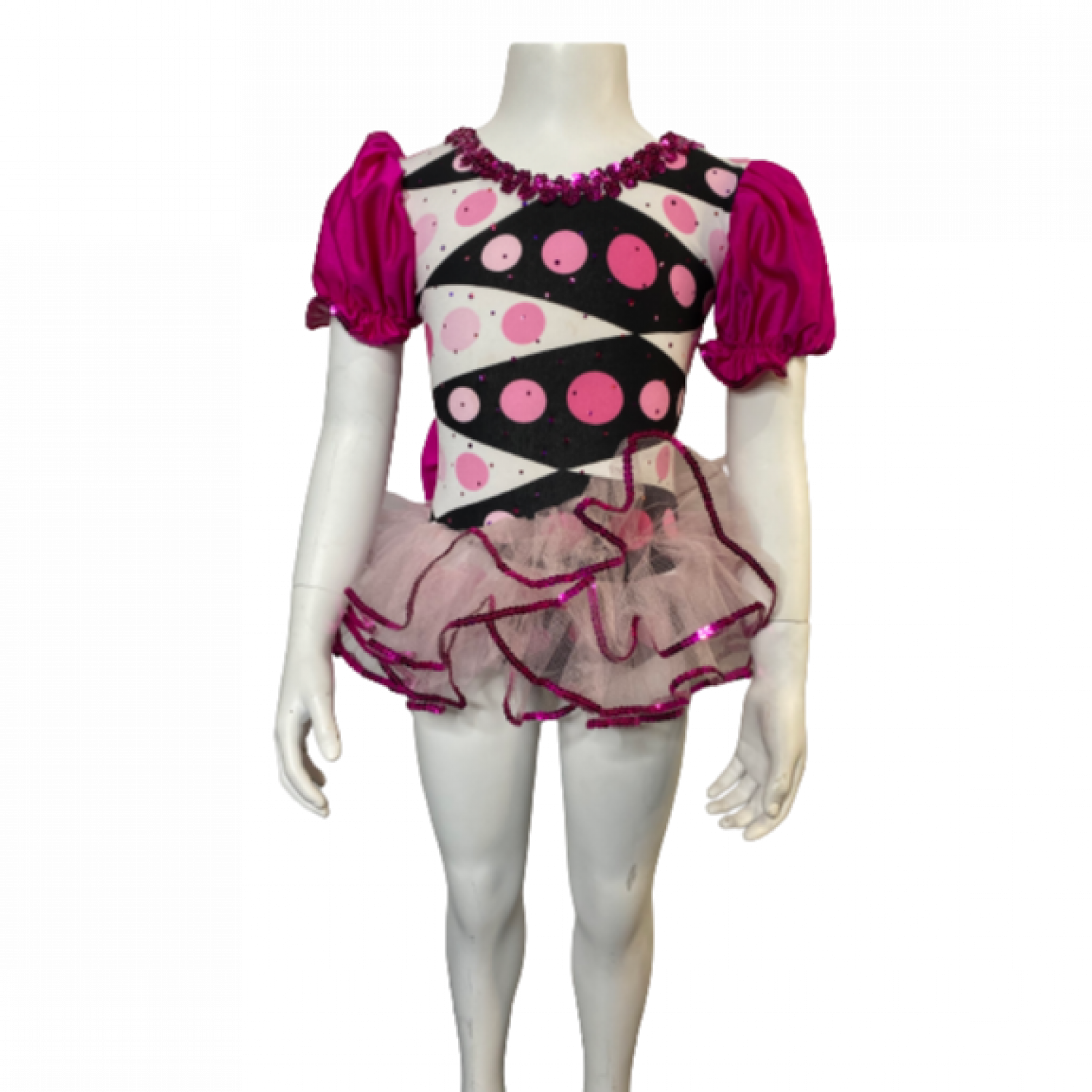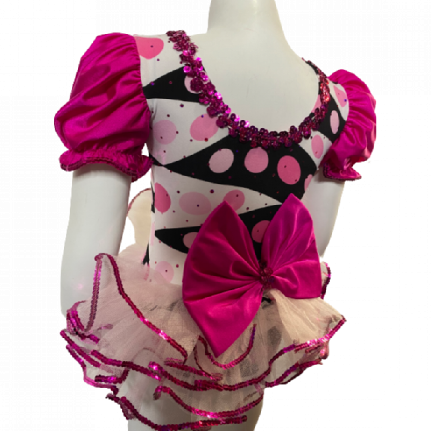 White/Pink Polkadot Bodysuit & Tutu with Pink Sequin Detailing