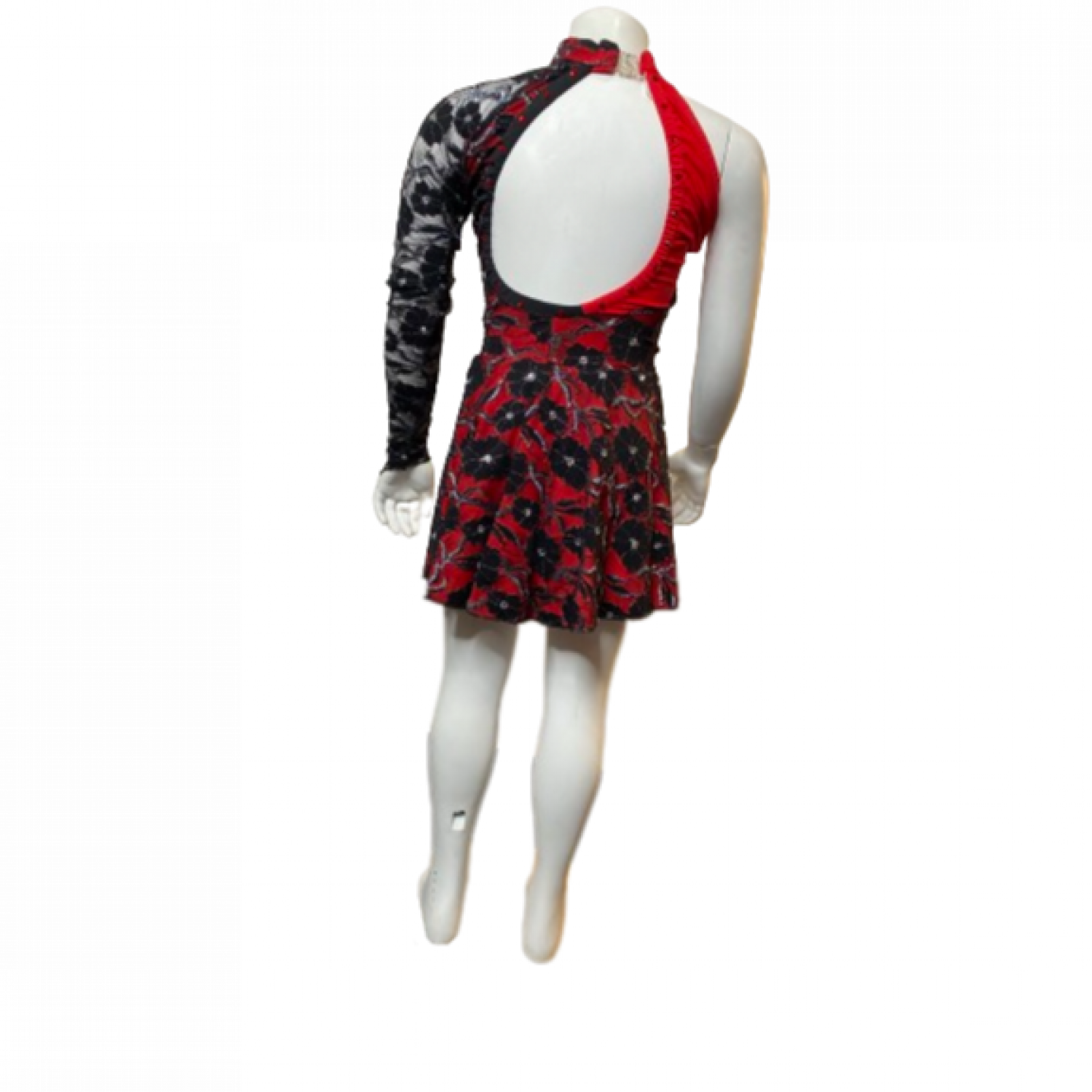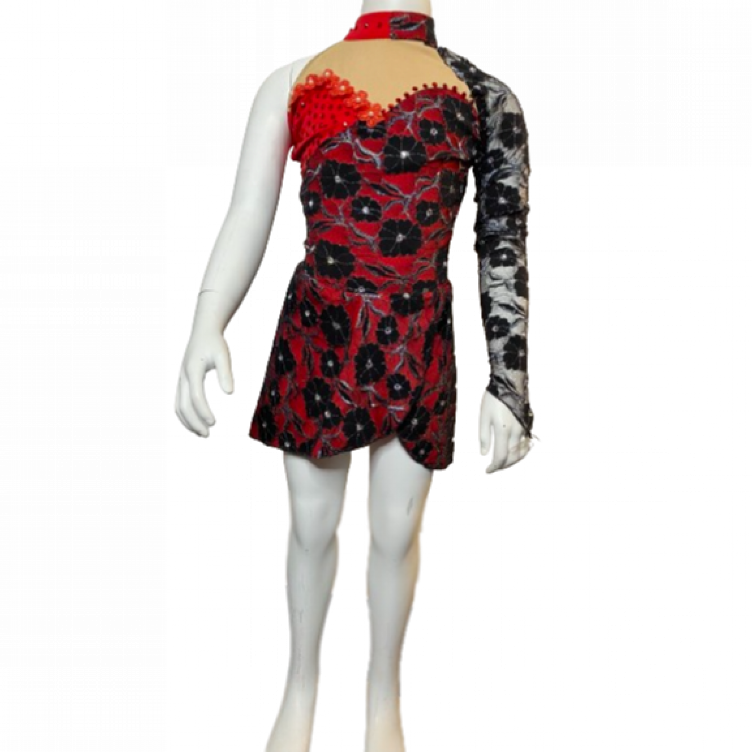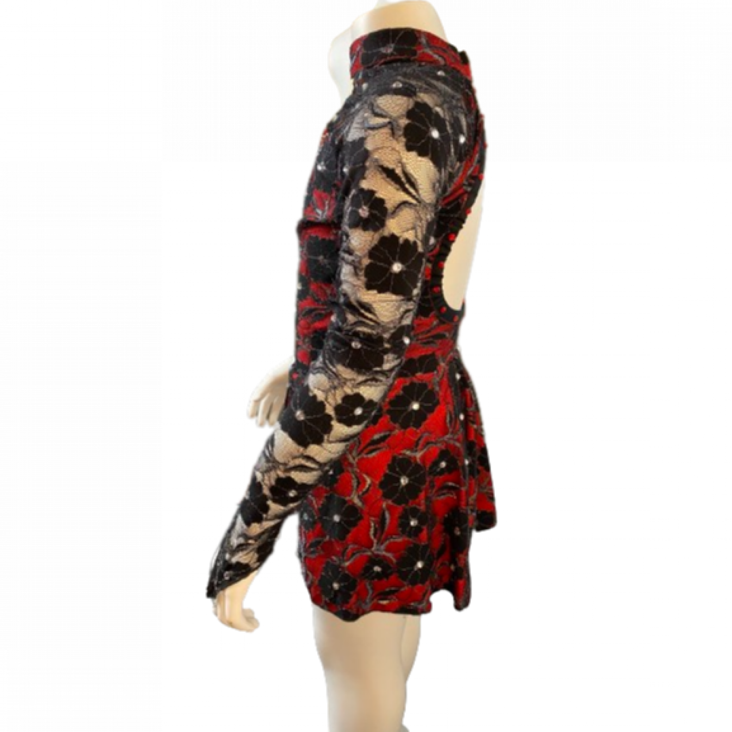 Red Bodysuit with Black lace Overlay with gorgeous black embroidery
