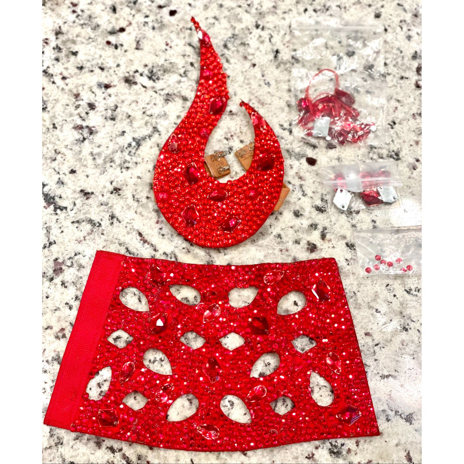 It comes with the arm accessories, extra stones (small, medium, large), and the black dress bag from Dancewear Works (dressmaker).