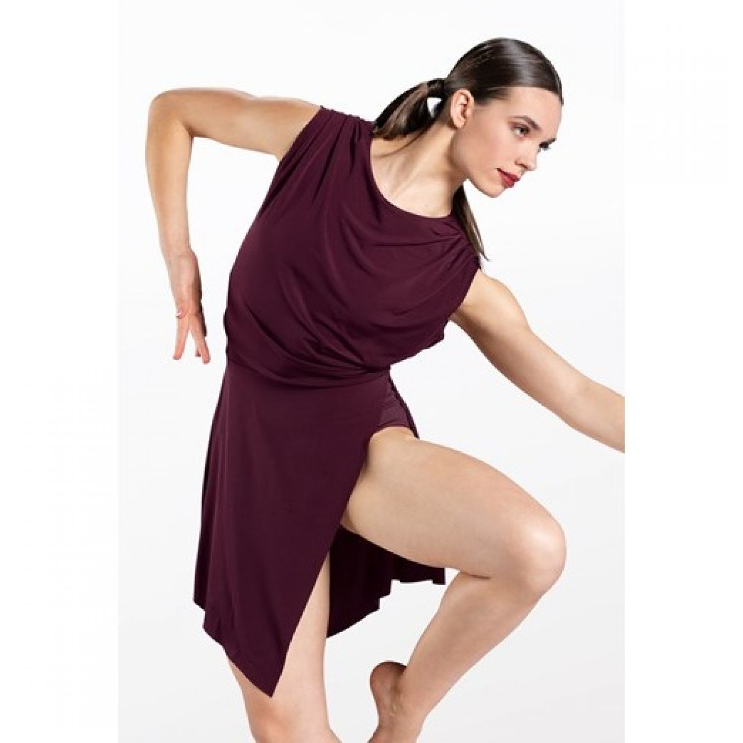 • Matte jersey over attached leotard