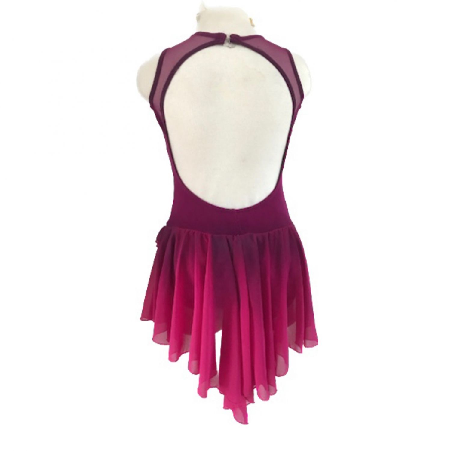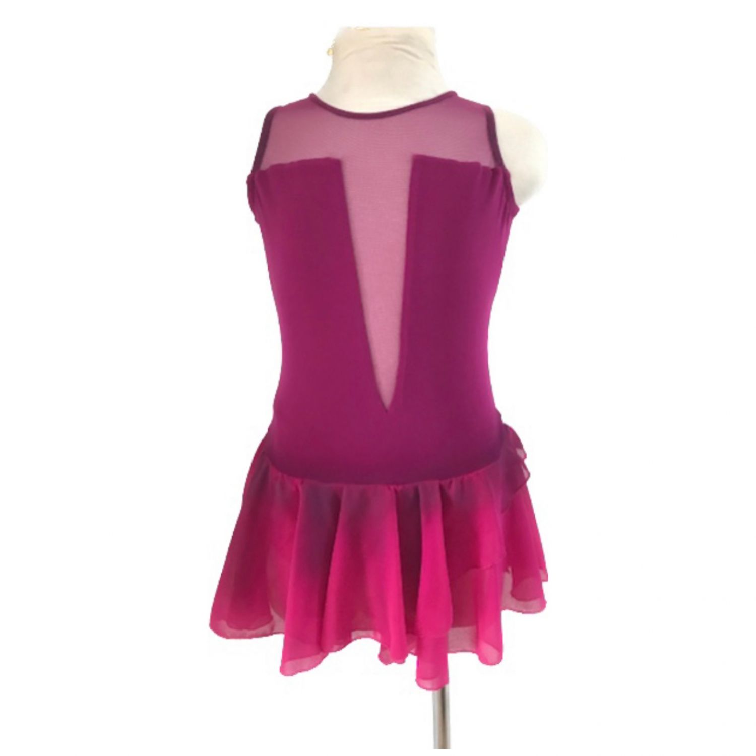 Bodysuit fully lined with attached skirt, air brushed to blend the colours, mesh cut-out in front and open back.  Neck closure.
