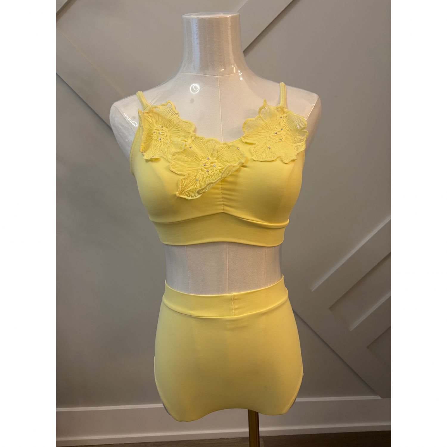 A tasteful and elegant two-piece costume perfect for lyrical dance, featuring a beautifully crafted top adorned with delicate floral appliqués. Soft, graceful, and expressive—this ensemble captures the emotion of every movement with timeless style