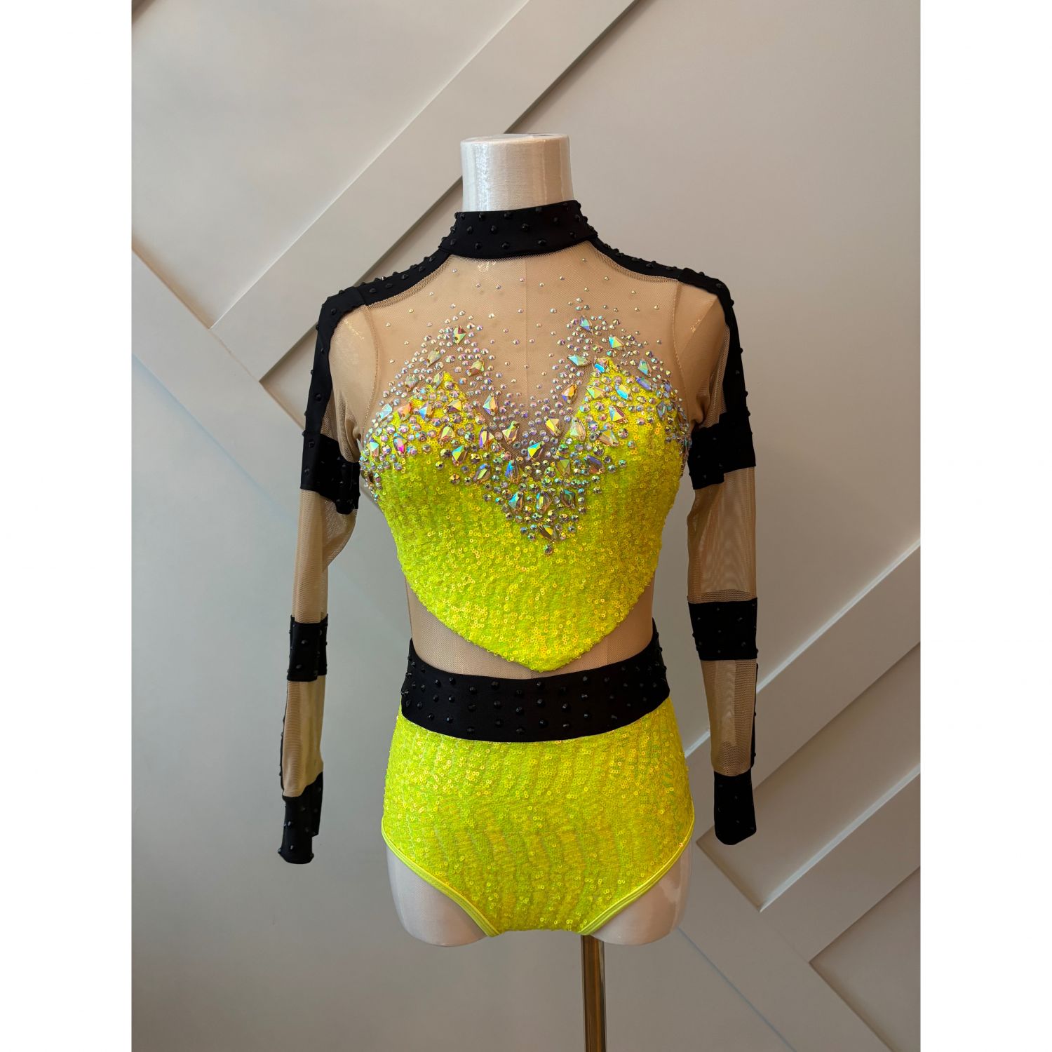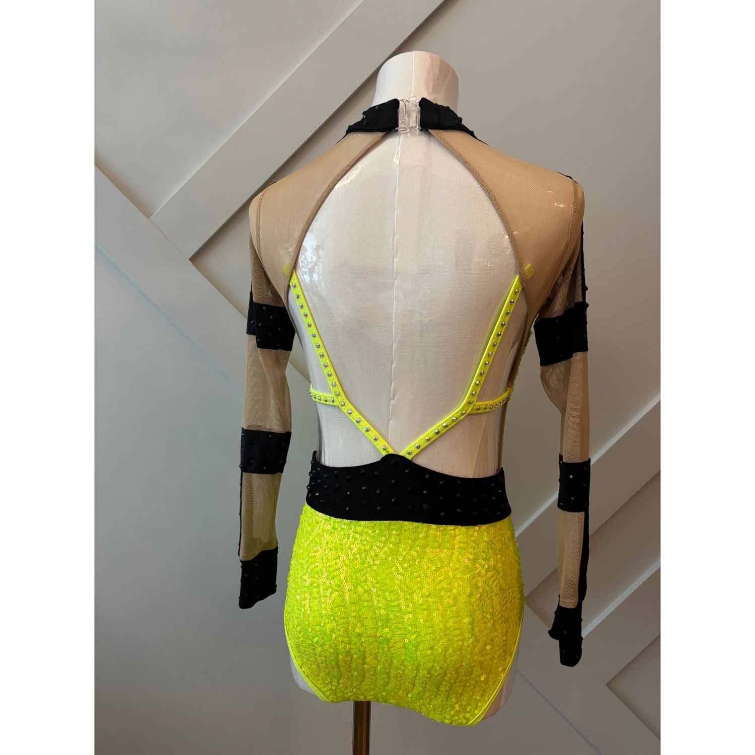 Show-stopping bedazzled long sleeve backless leotard – designed to dazzle under the spotlight. Featuring stunning details that catch every eye, this costume is guaranteed to impress the judges and command attention on stage