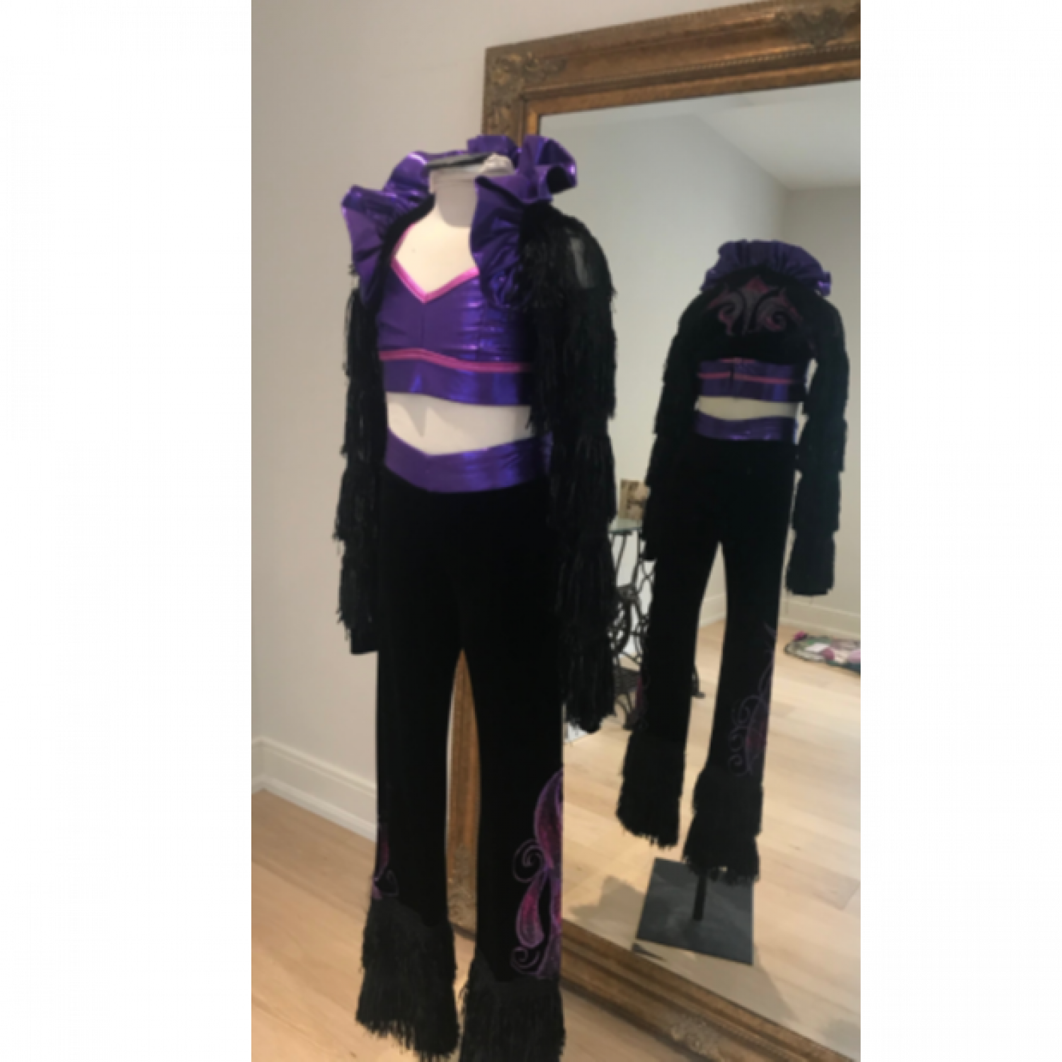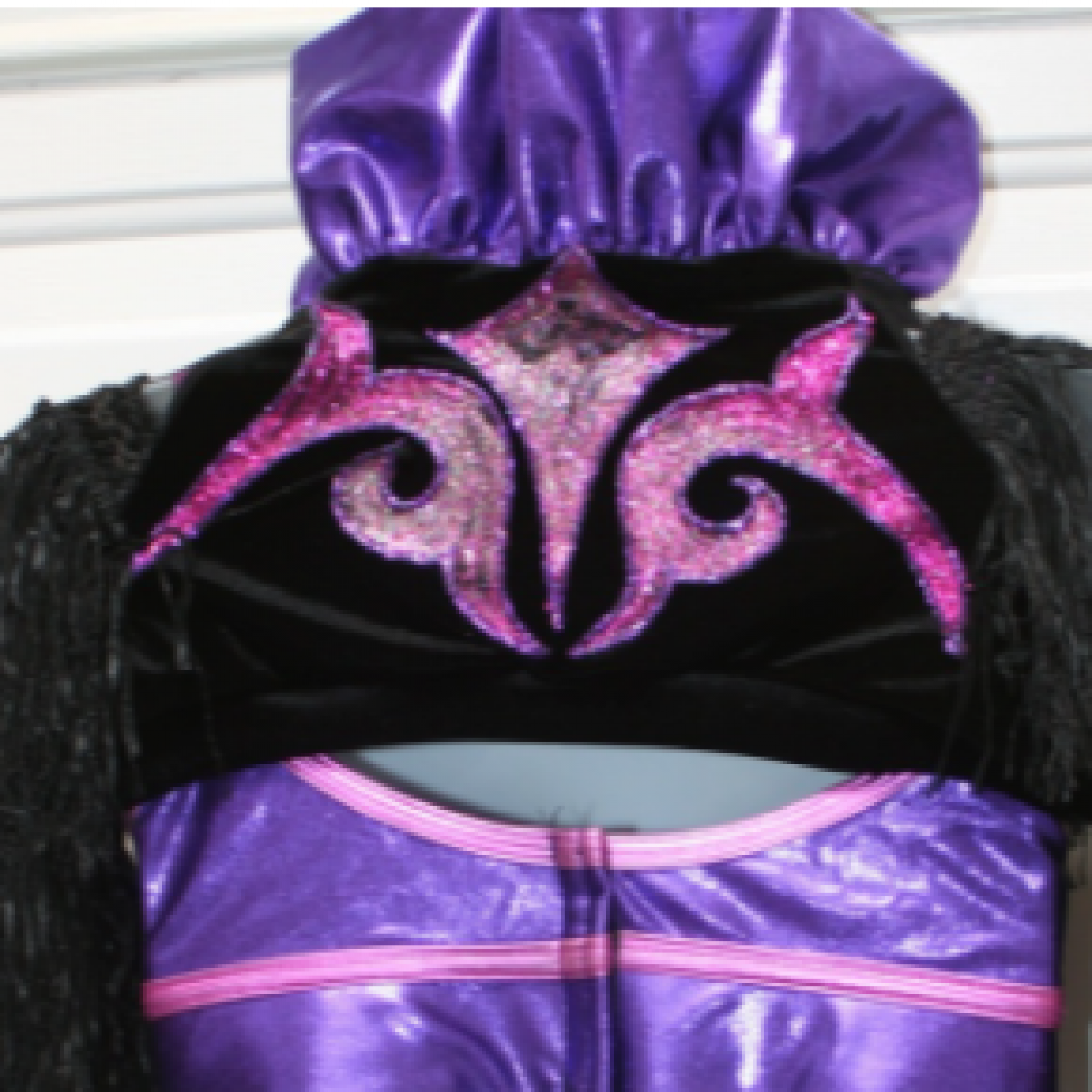 Bolero style jacket with high collar, fringe sleeves and painted back