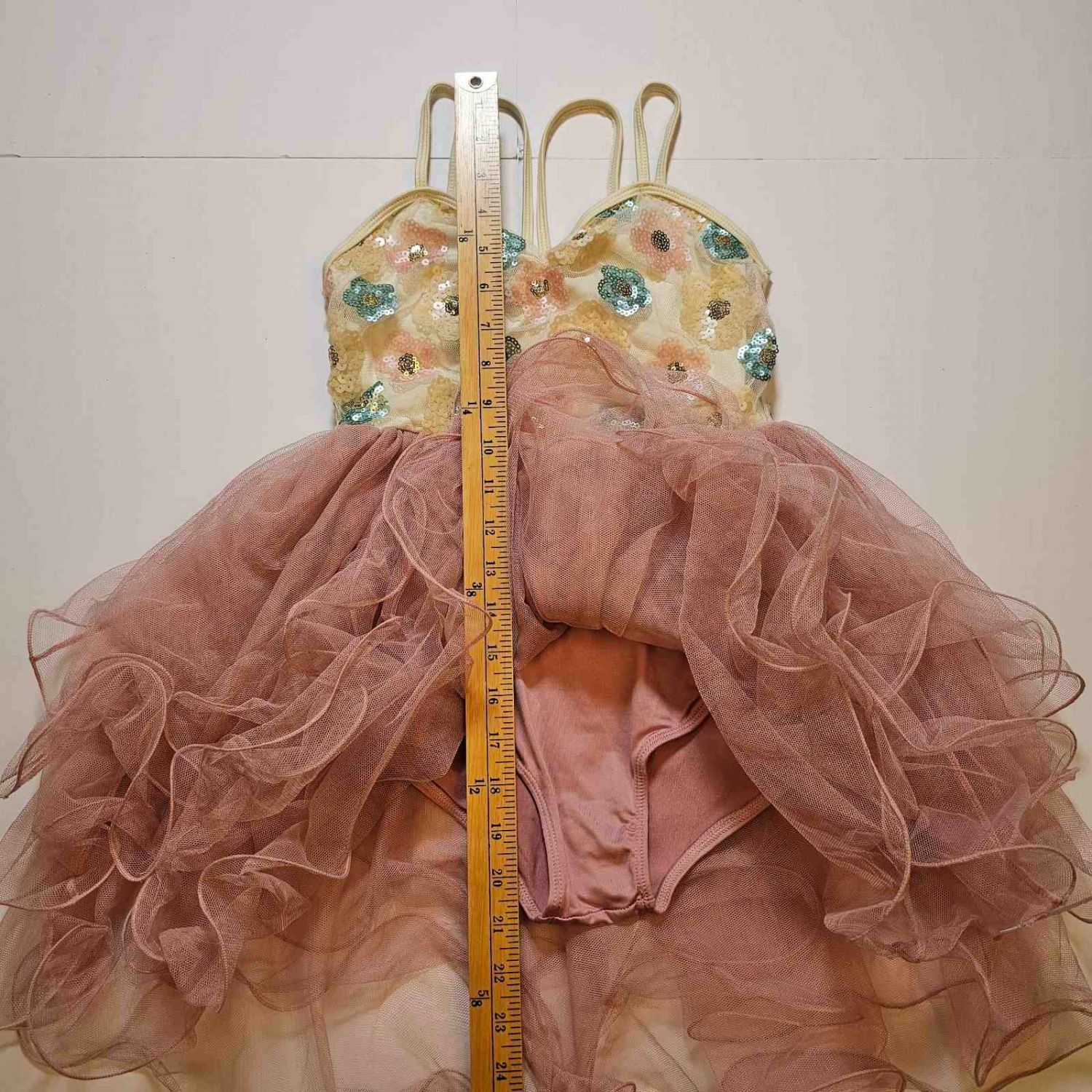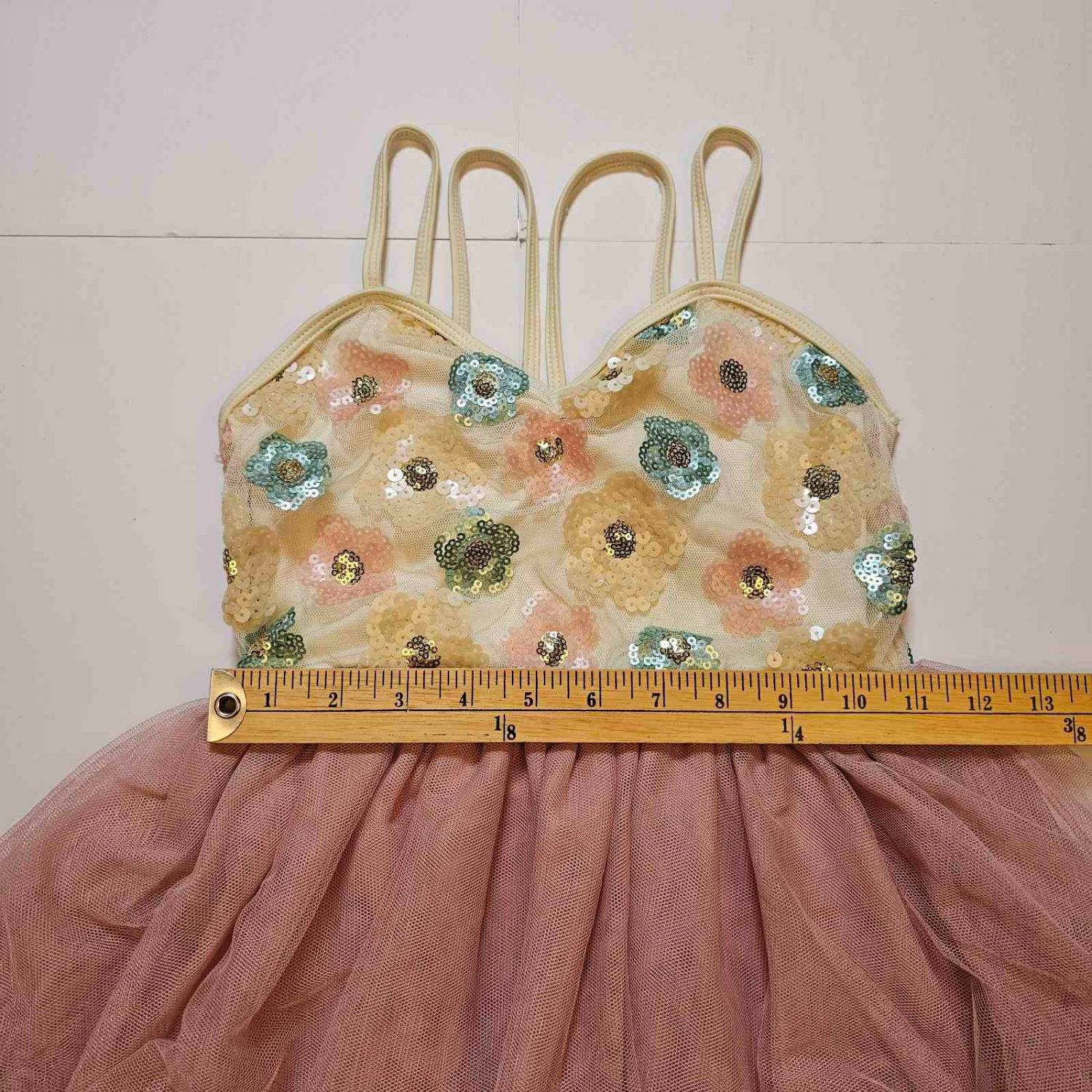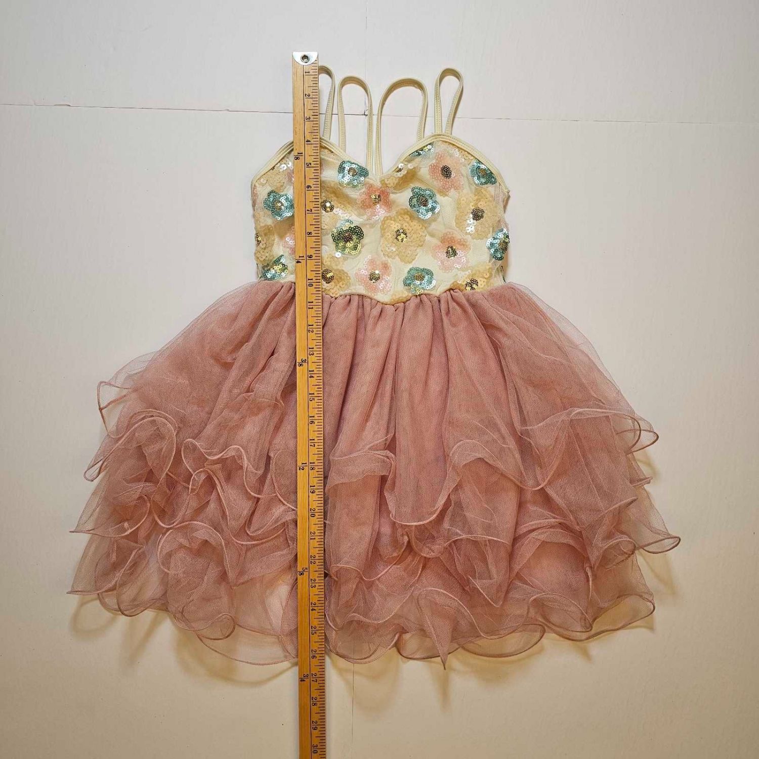 I enjoy Being a Girl - Weissman pink layered tulle skirt sequined leotard musical theatre dance costume in size LC - Child Large. Can be used for tap, jazz or ballet.