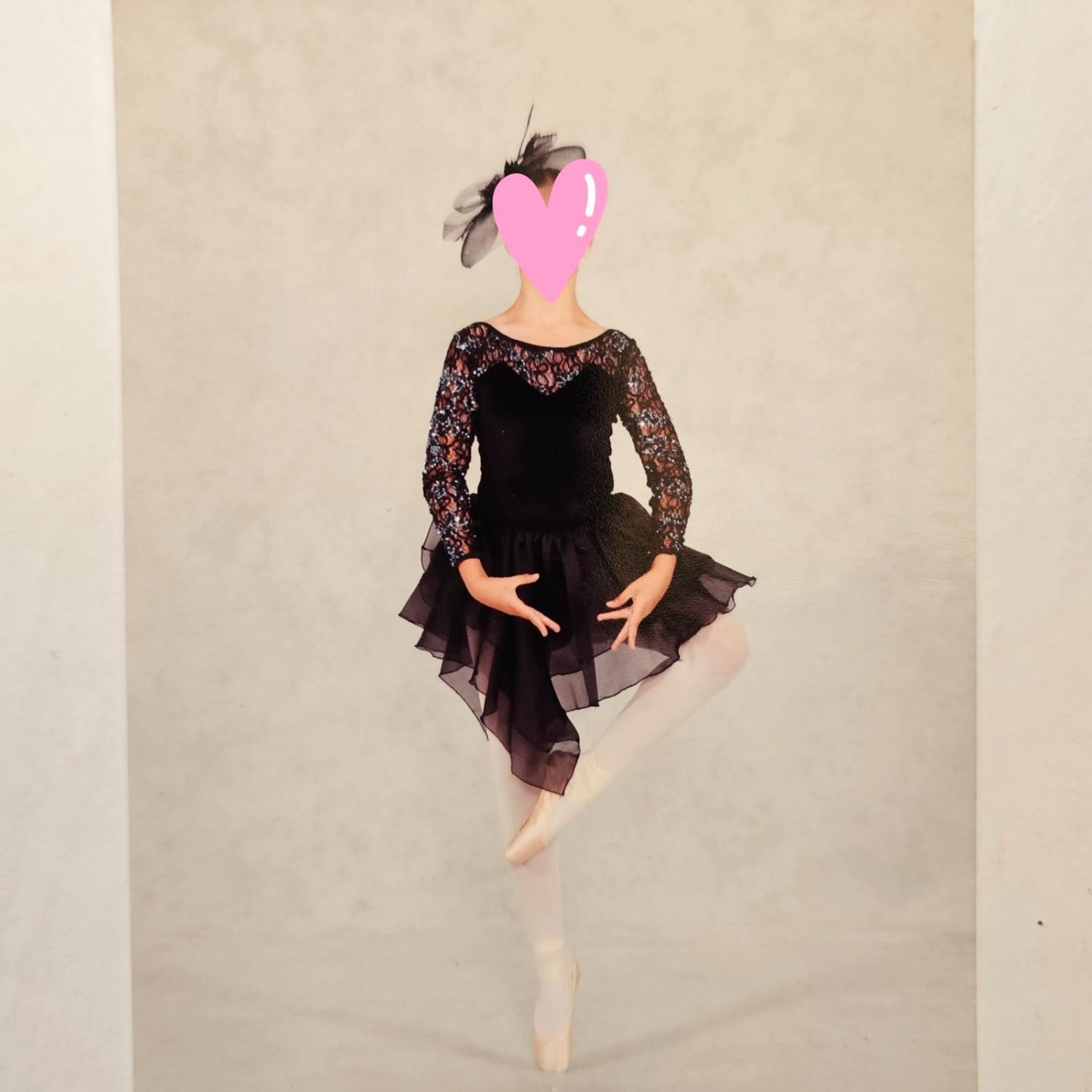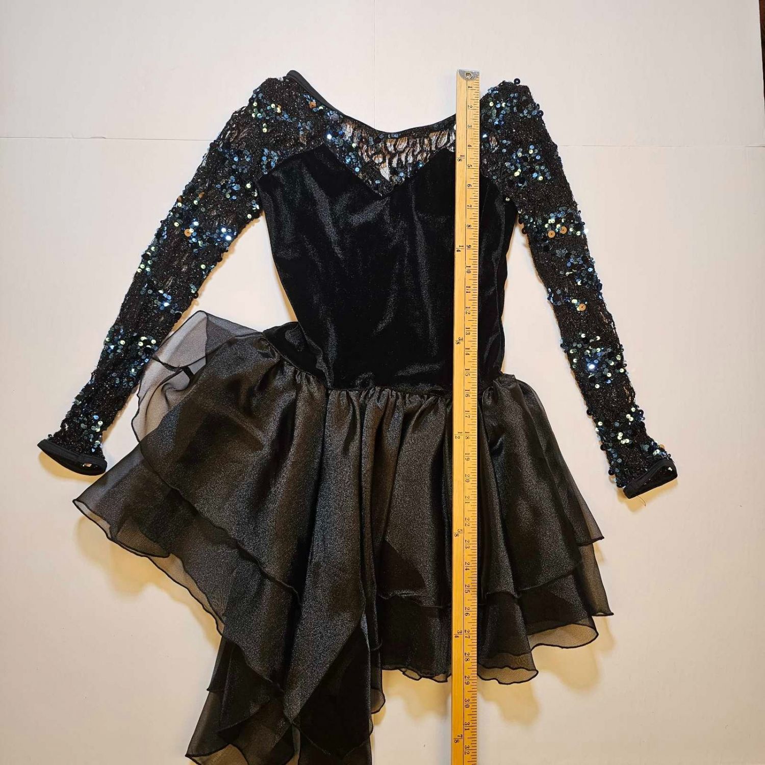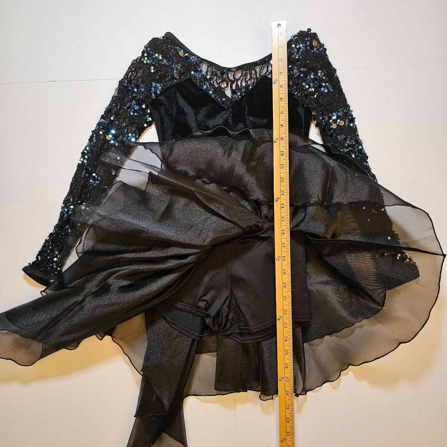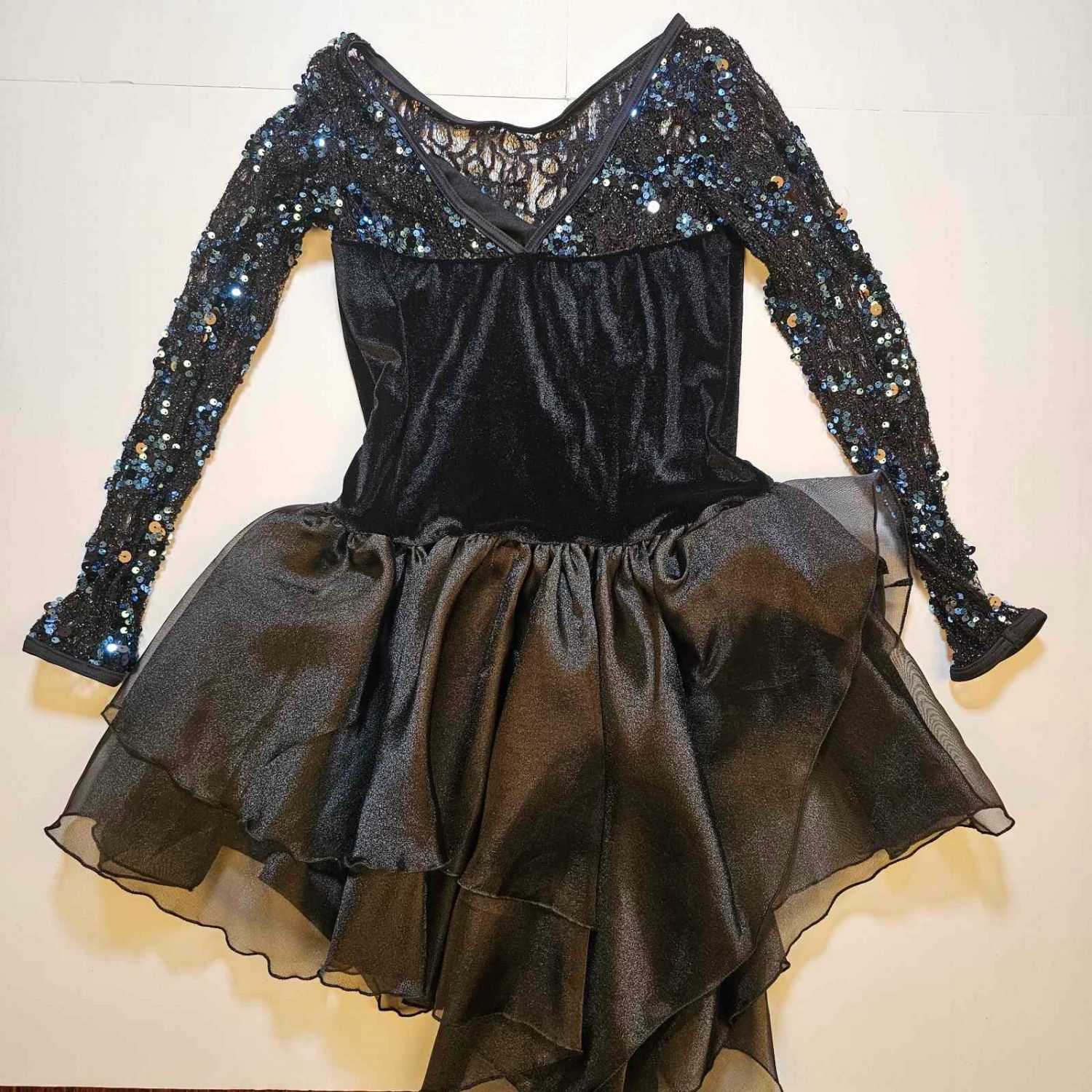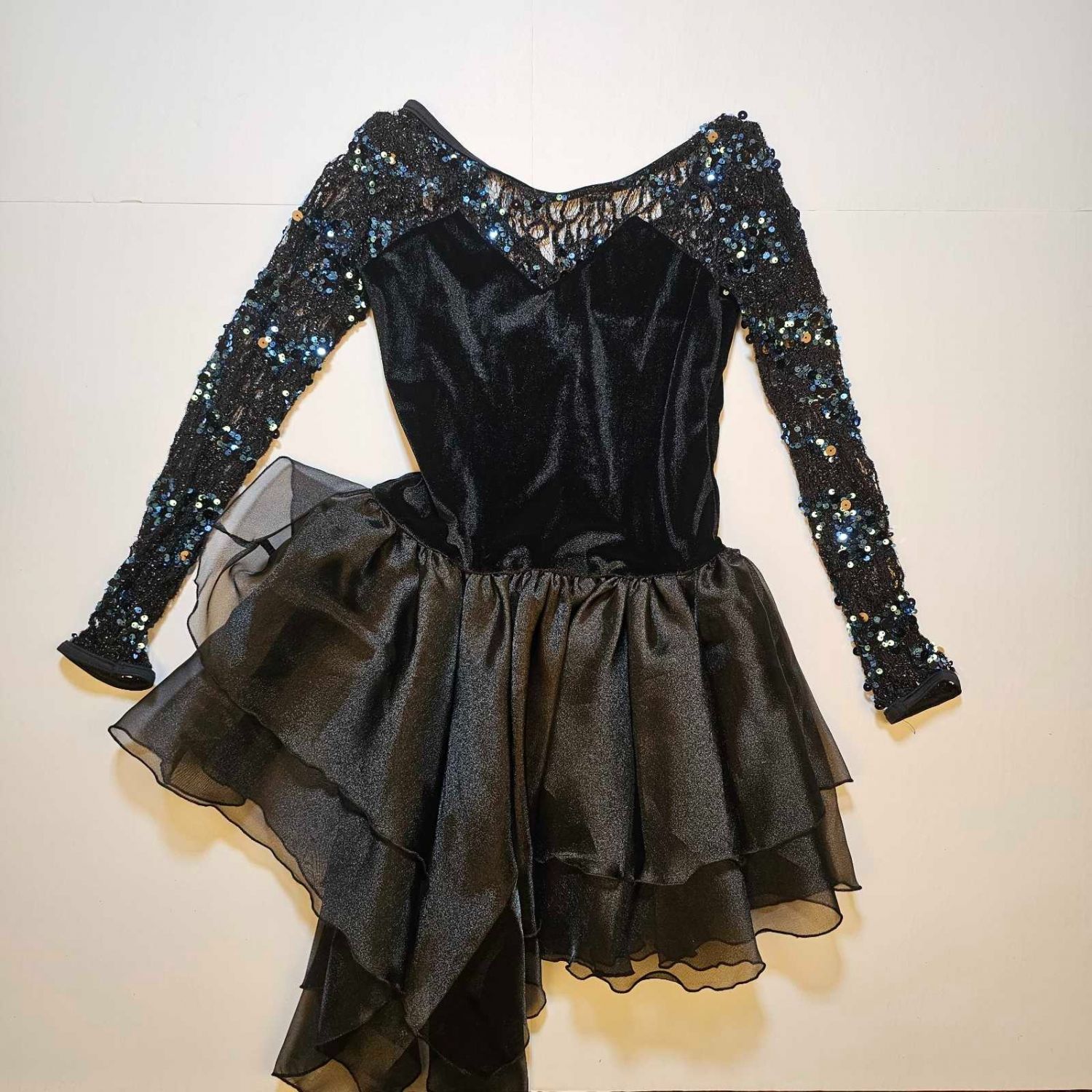 Weissman black organza soft tutu velvet bodice and sequined lace long sleeves pointe ballet dance costume in size XLC - Child Extra Large.