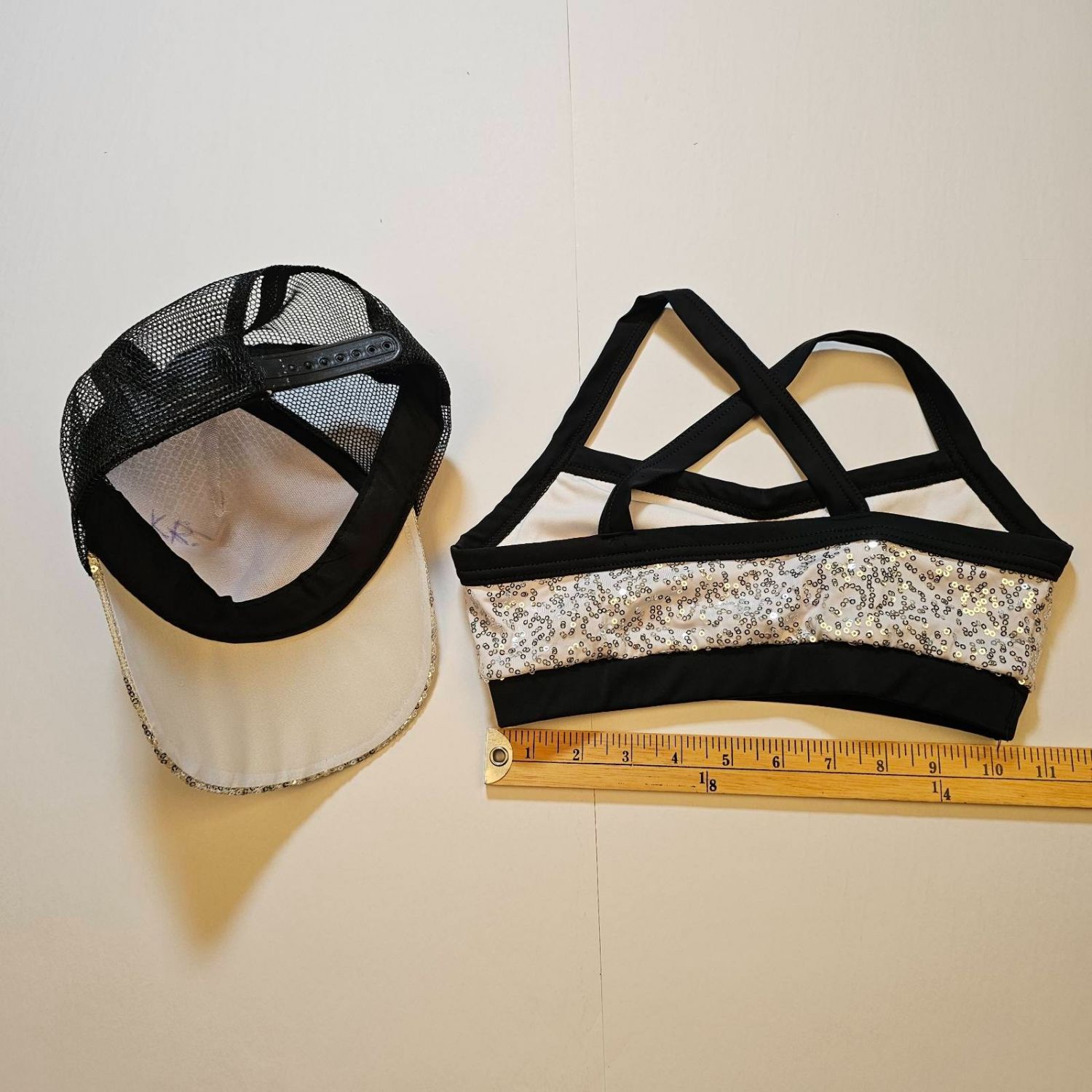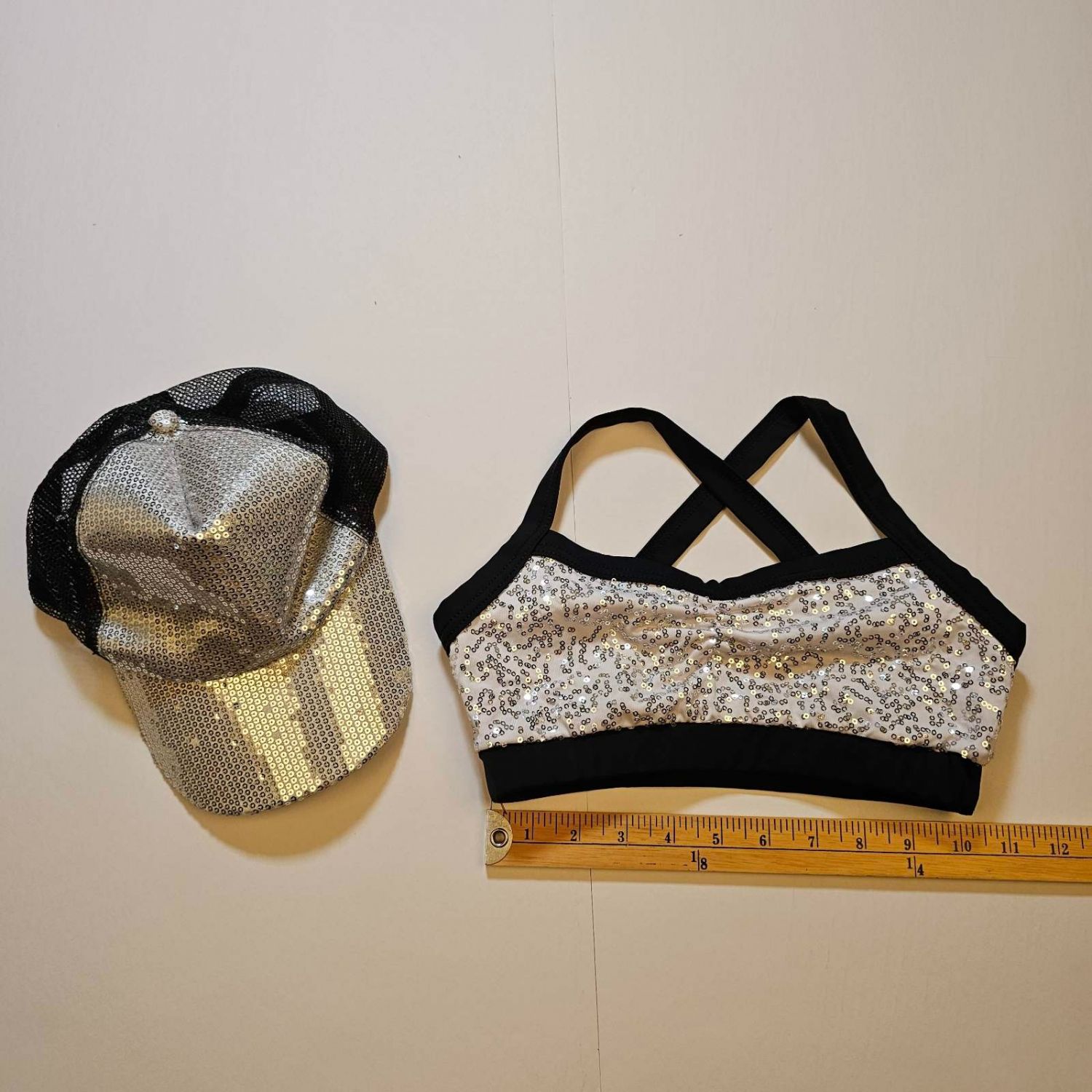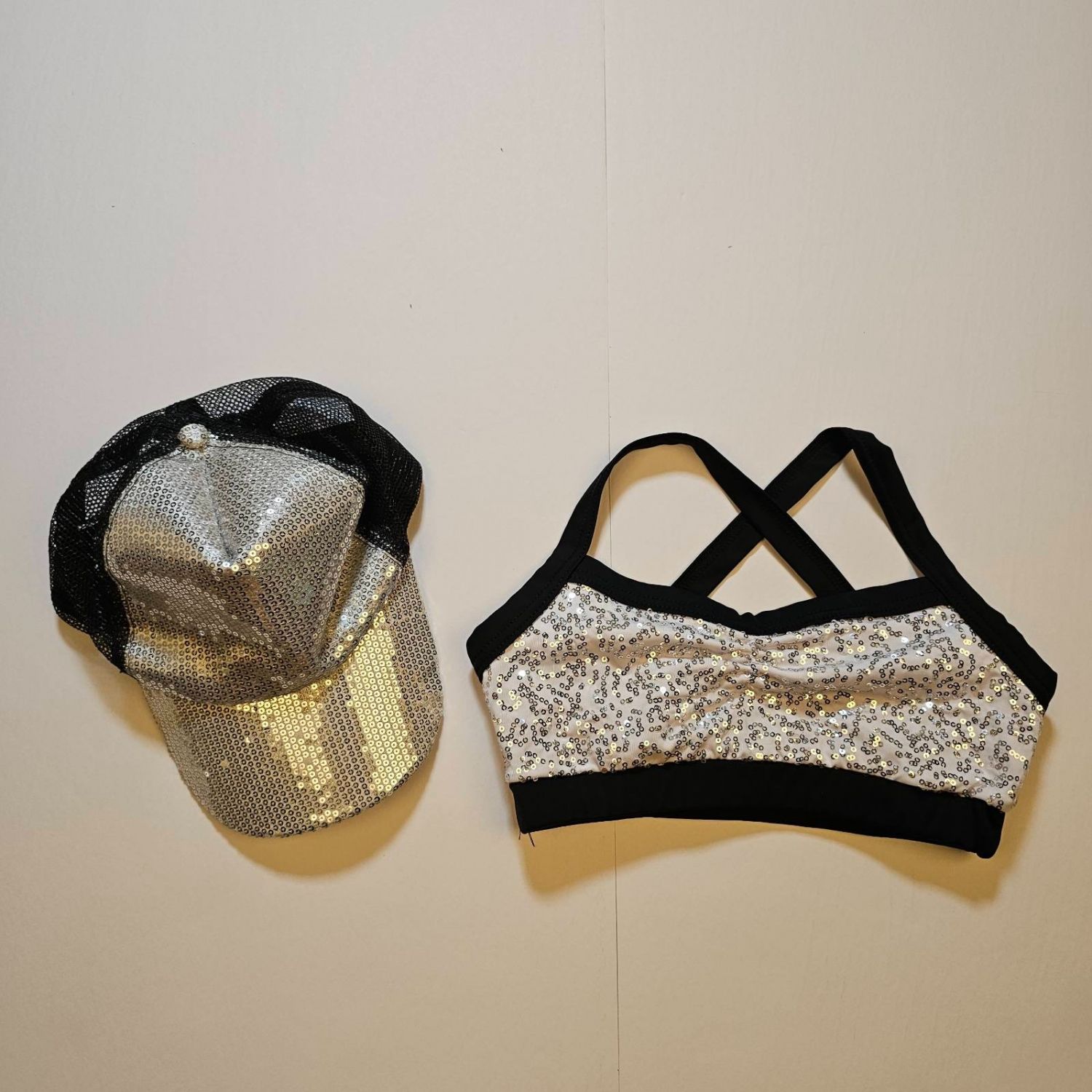Weissman sequined black and white cap and cropped top for Hip-Hop dance costume in size MC - Child Medium.